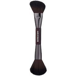 Boasting two brushes in one, this double-ended brush is the perfect tool for powder application and sculpting. Use the rounded side, with has both straight and wavy fibers, for traditional powder application or highlighting. The angled side, which features wavy fibers, is perfect for sculpting the cheekbones. This brush can be used with loose and compact powders. \n