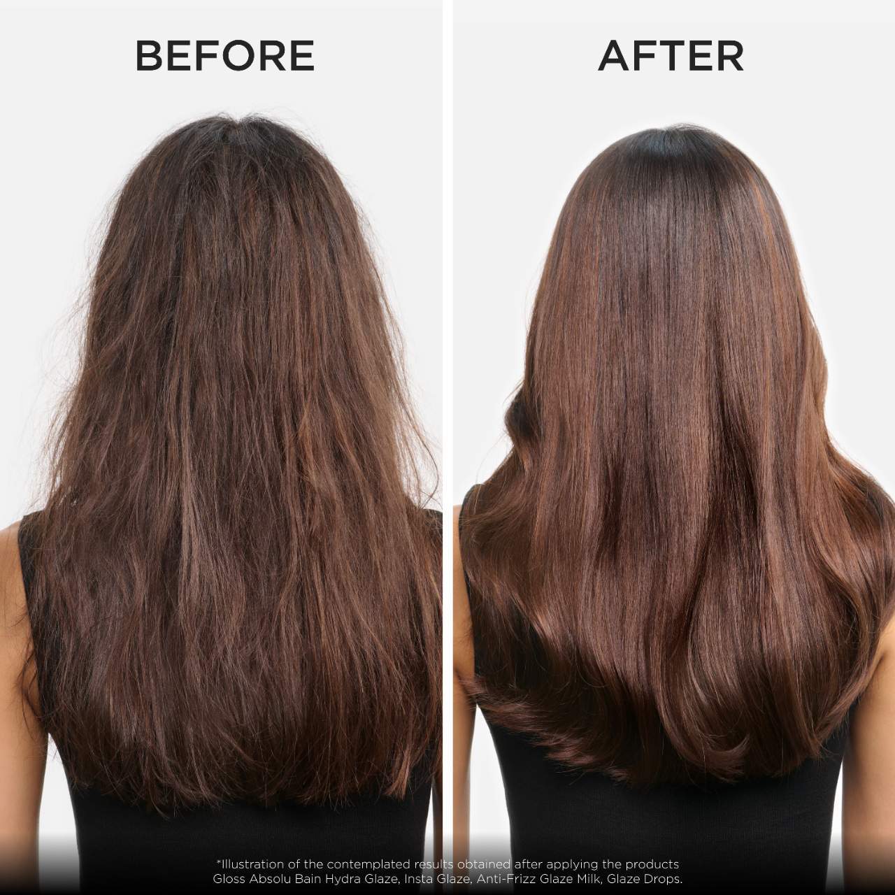 What Else You Need to Know: New Gloss Absolu, for up to four days of anti-frizz** and bouncy, glossy hair. The range is formulated with hydra-glazing technology and contains wild rose in oil to leave hair feeling smooth and glossy. This lightweight, high-gloss oil instantly smooths hair and provides two-times more shine. The versatile oil can be used on wet hair as a prep before styling or on dry hair to reduce frizz and to achieve your glossy hair goals.