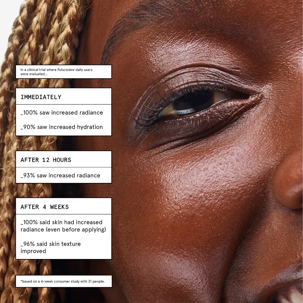 - Increased radiance was observed in 100% of subjects