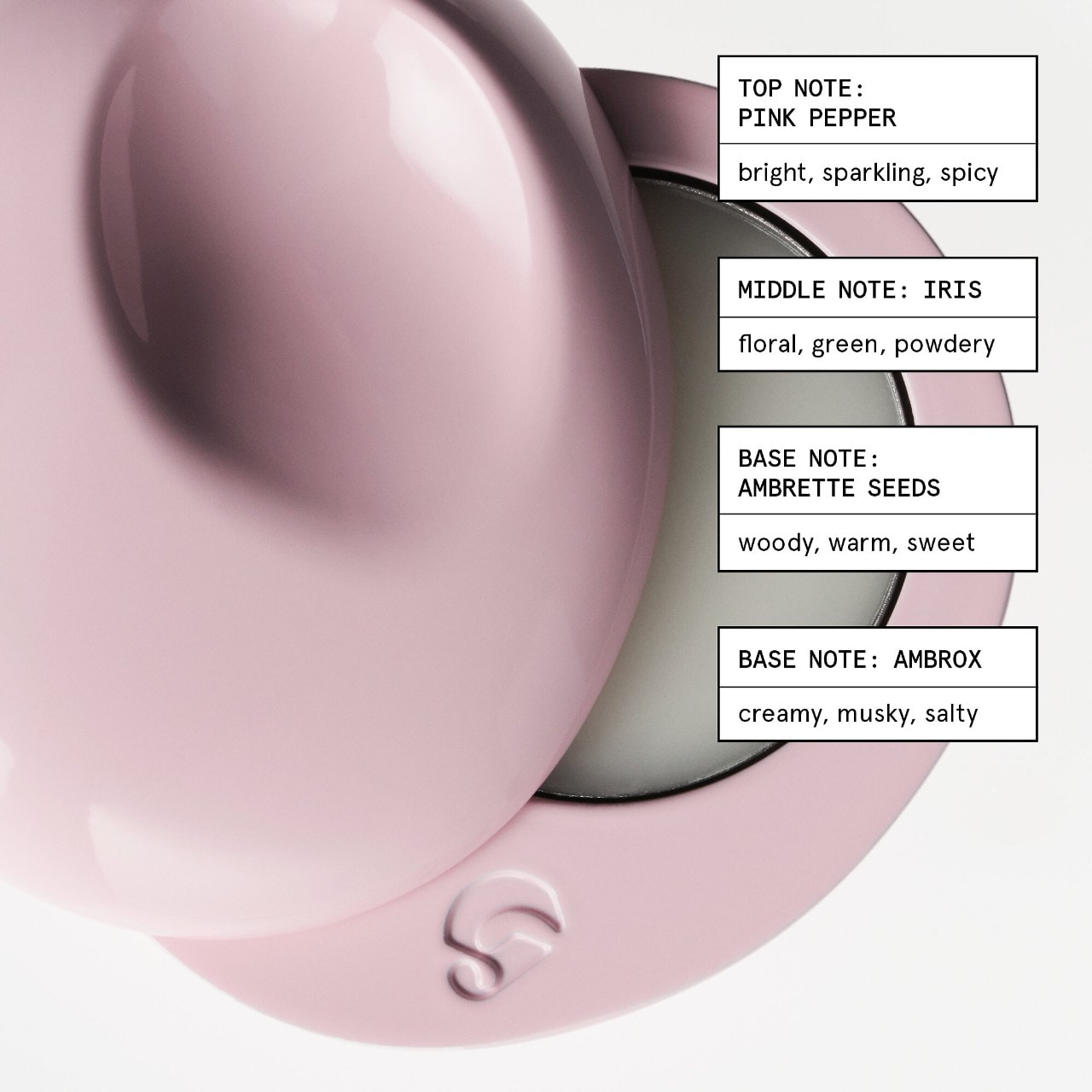 Key Notes: Pink Pepper, Iris, Ambrox