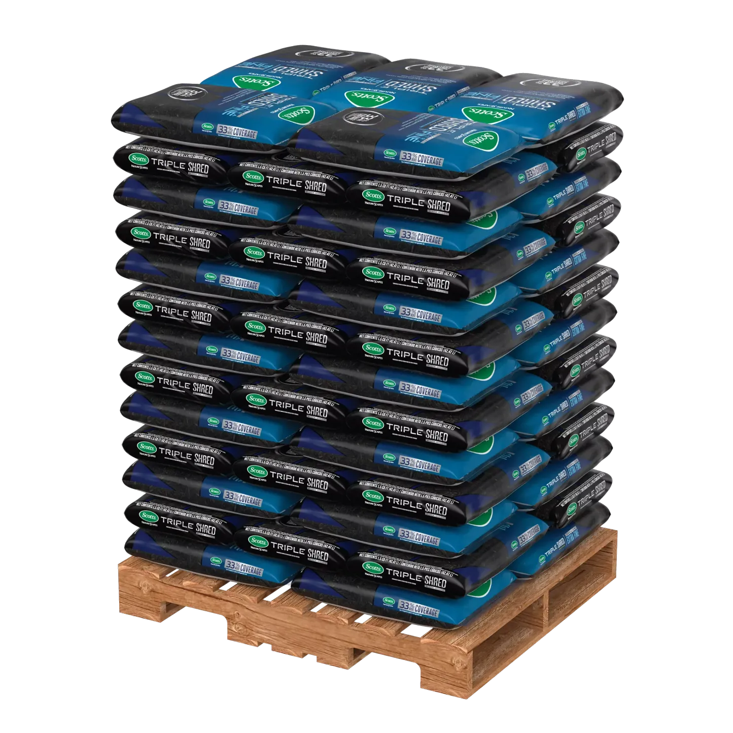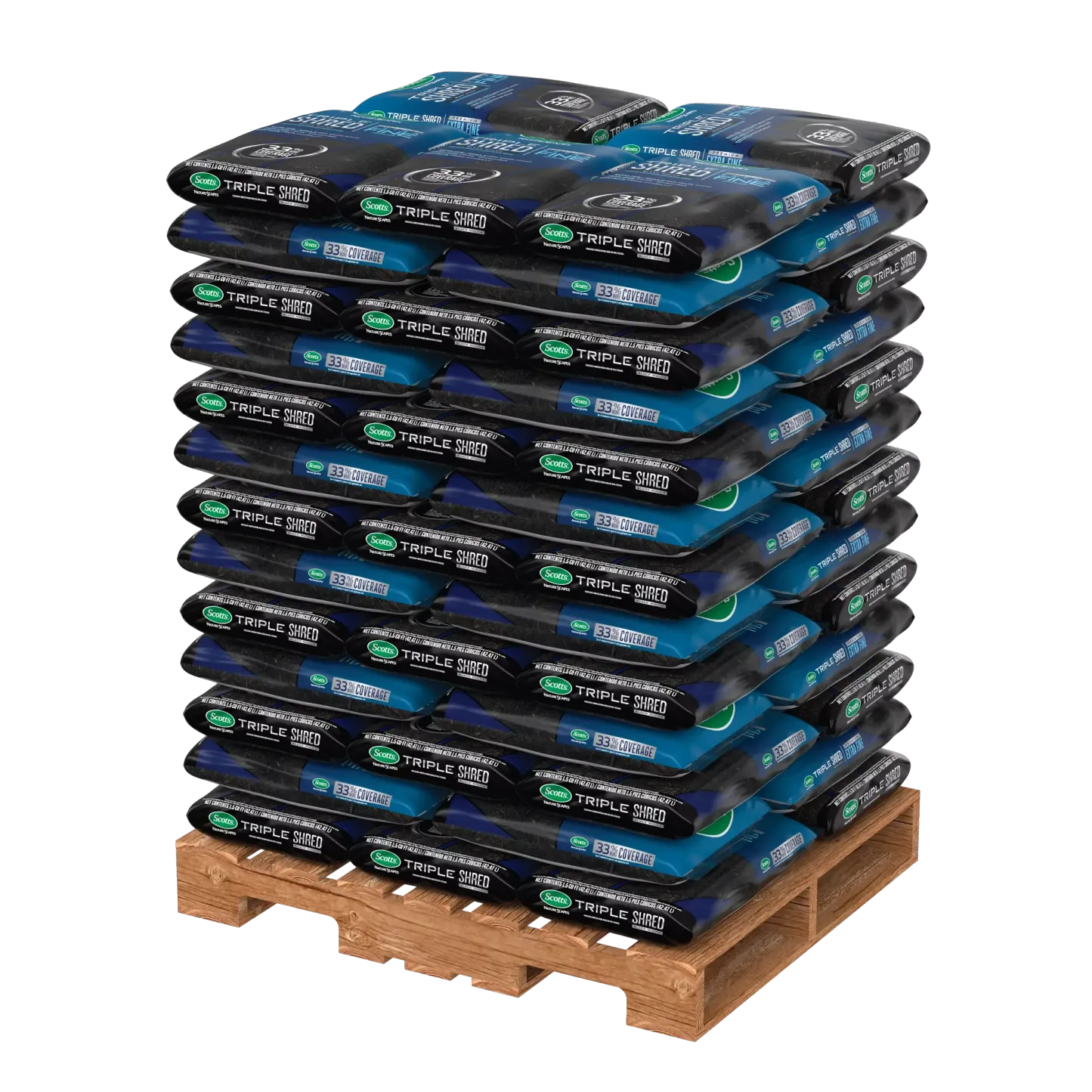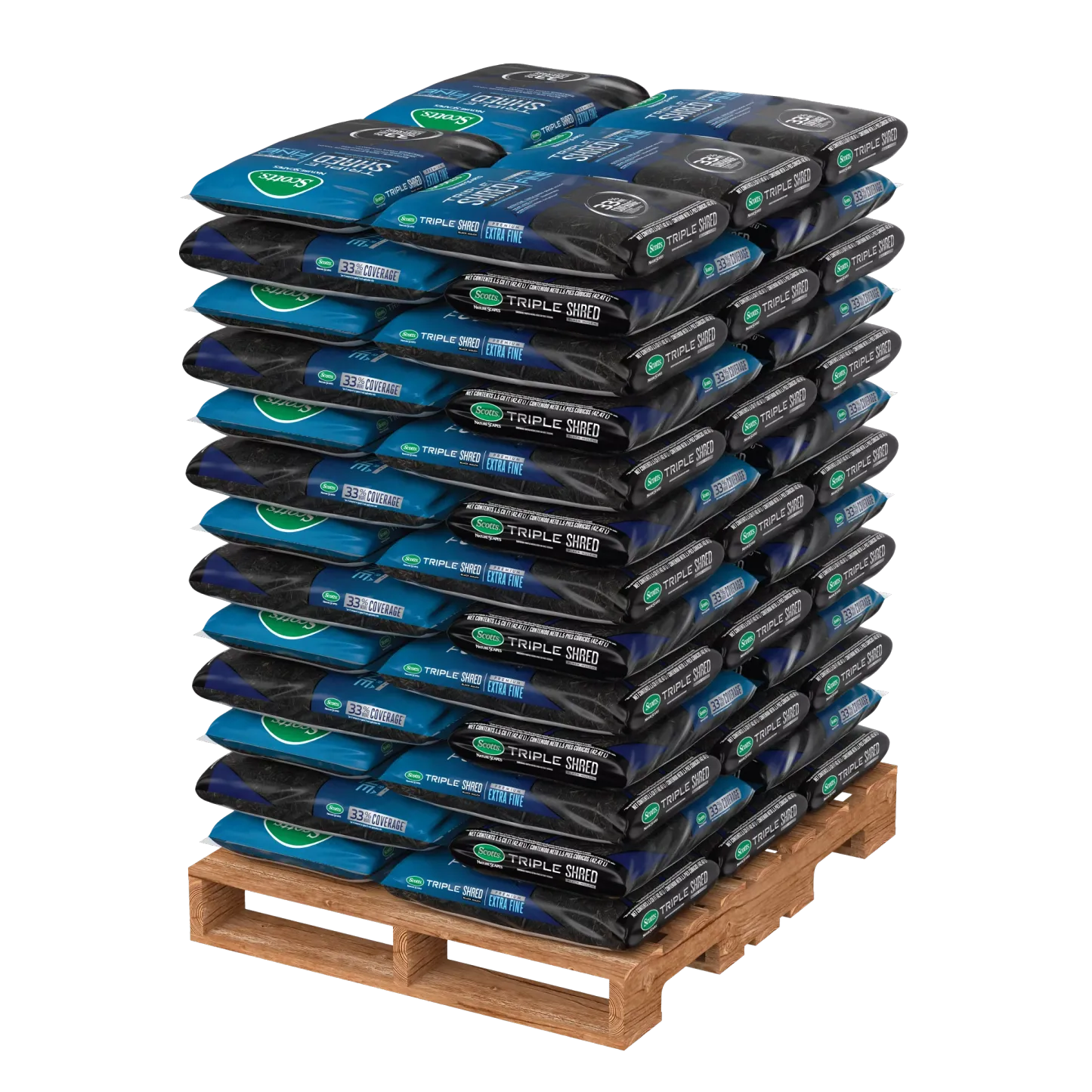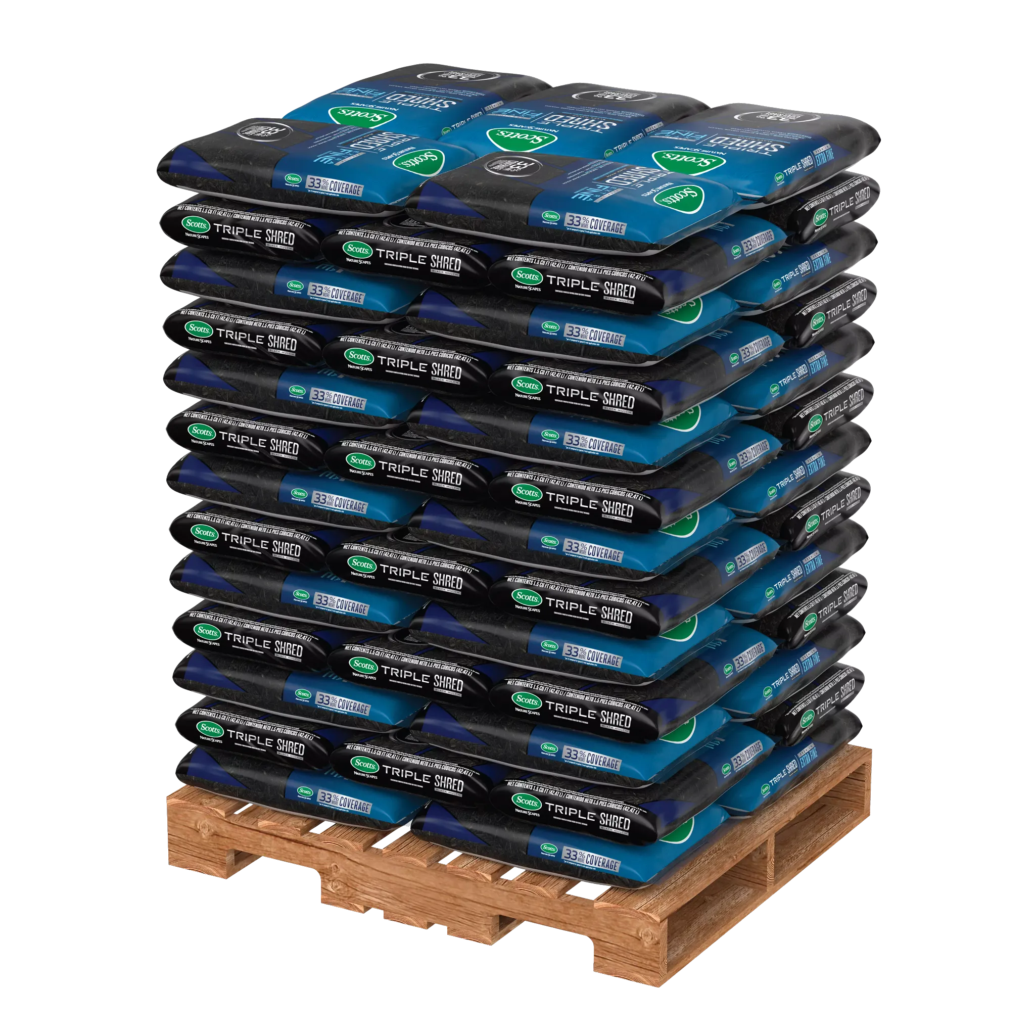 - Scotts® Nature Scapes® Triple Shred Black Mulch is an extra-fine, easy-to-use mulch that provides year-long color and 33% more coverage per cubic foot compared to typical 3 inch application rate