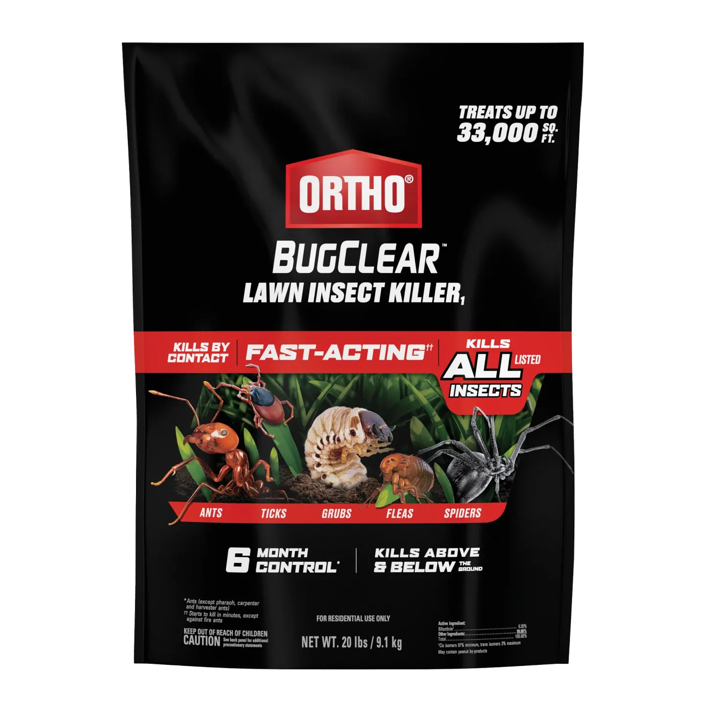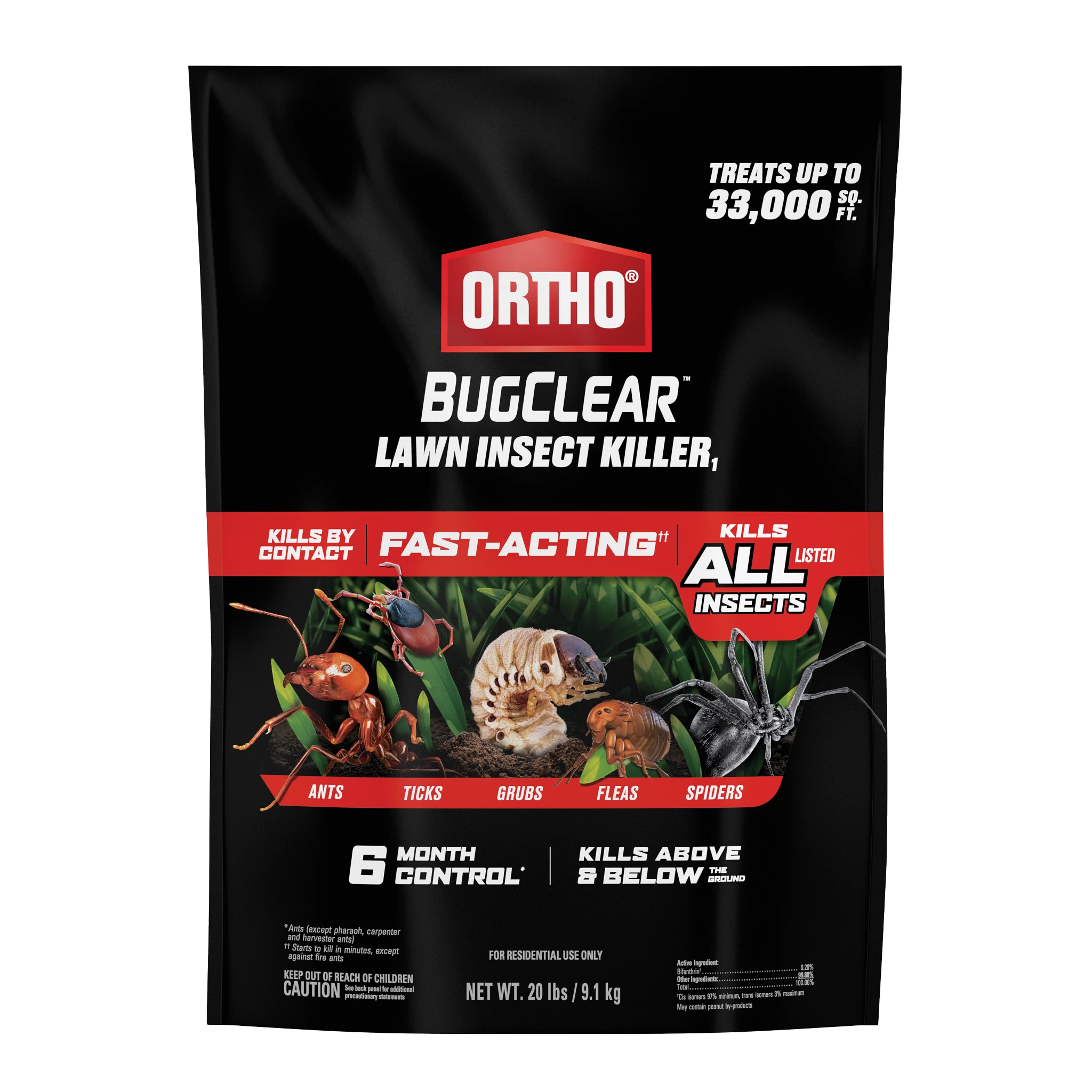 - DEFEND YOUR LAWN FROM BUGS: Bugs can destroy your lawn; kill ants, grubs, spiders, fleas, ticks, and other listed insects before they cause problems with Ortho BugClear Lawn Insect Killer1