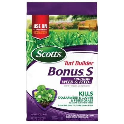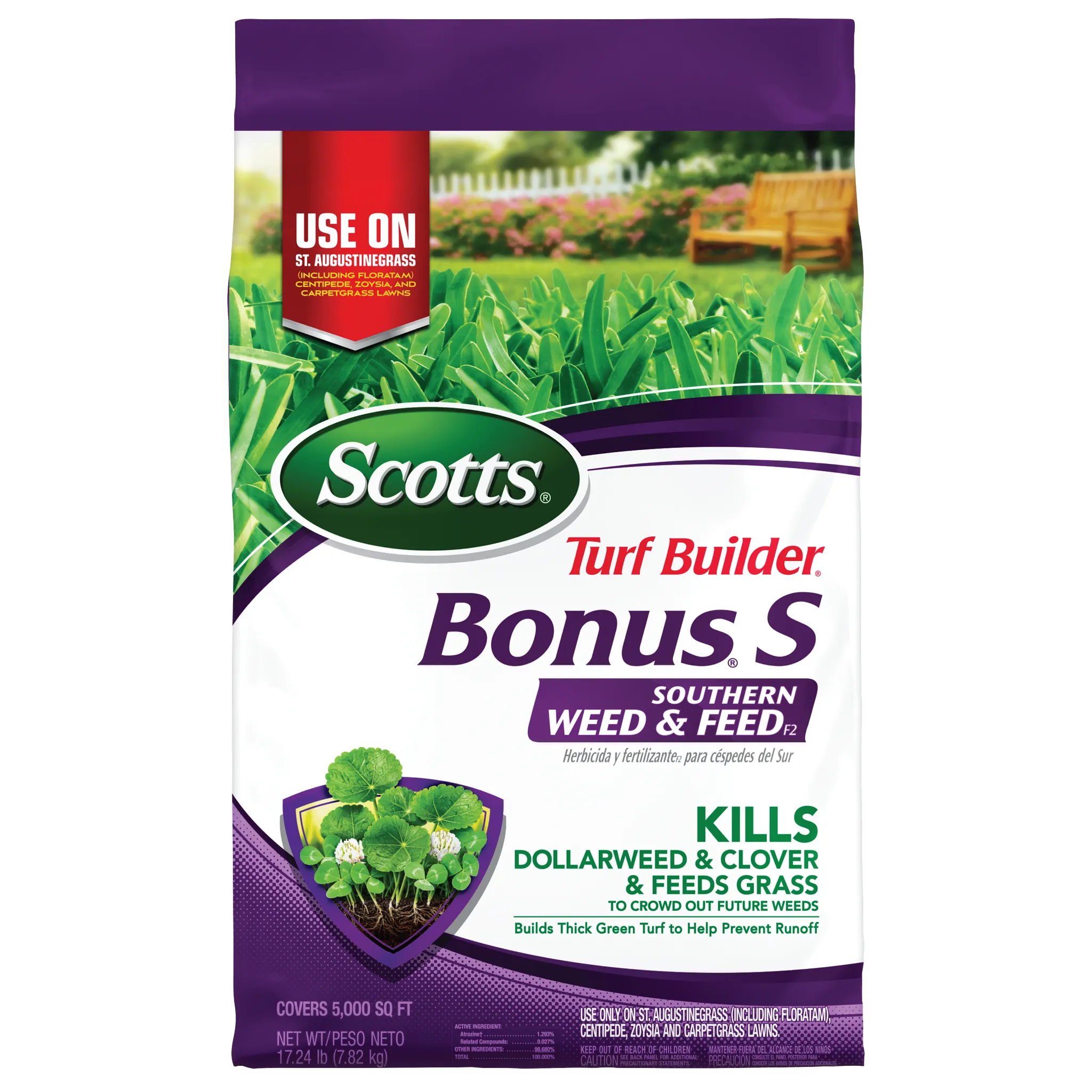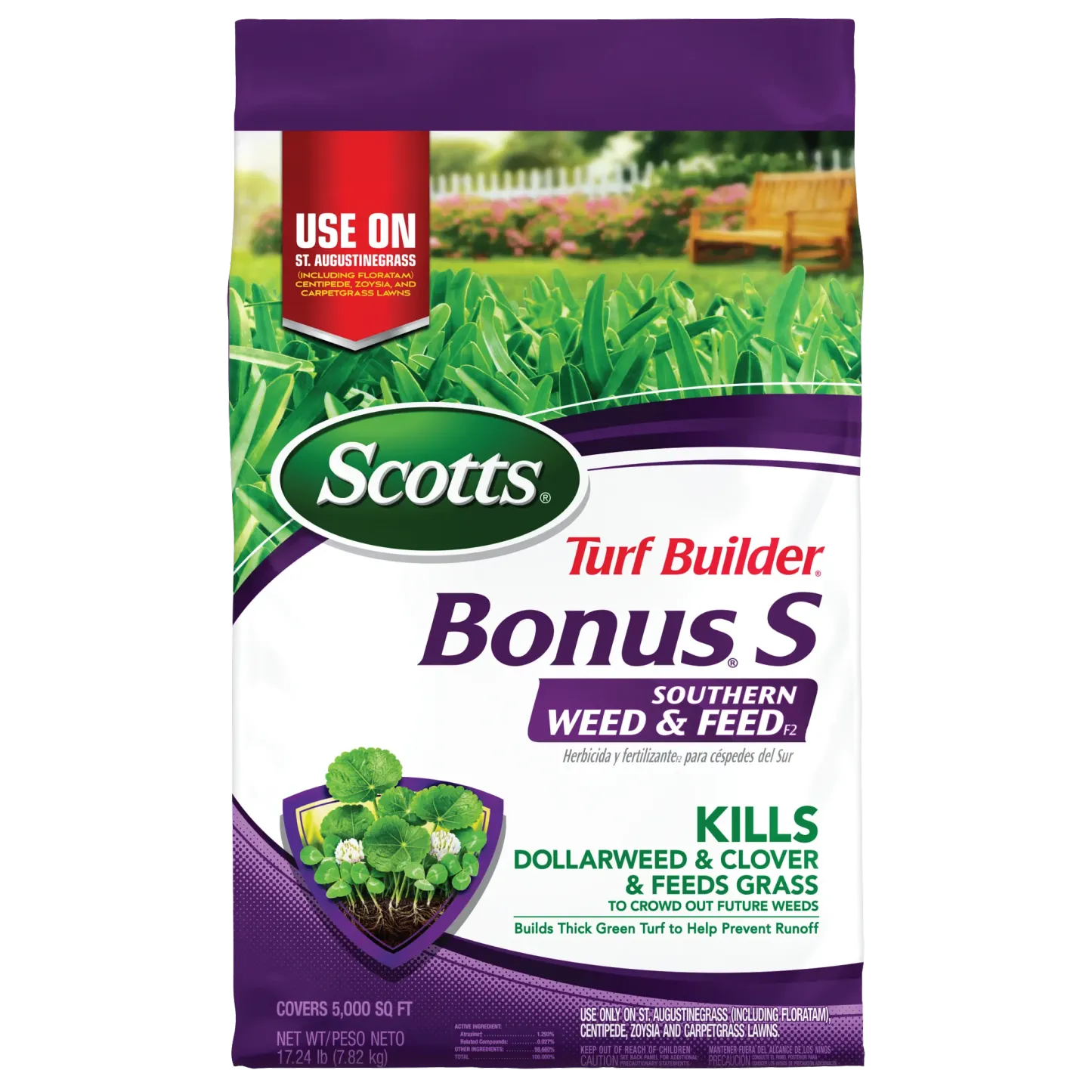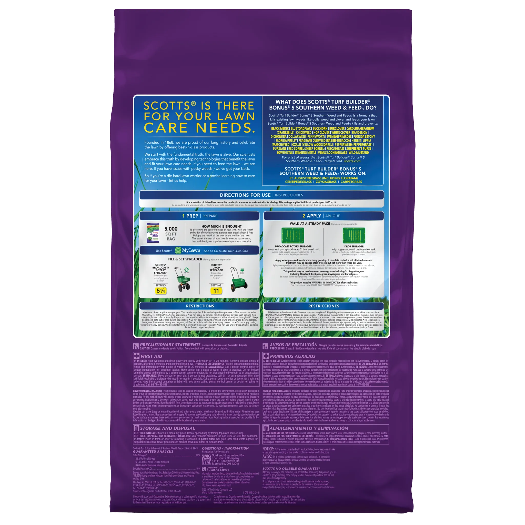- FIGHT WEEDS: Scotts Turf Builder Bonus S Southern Weed & Feed2 is designed for southern lawns; it not only kills existing weeds but helps crowd out future weeds by building thick, green turf