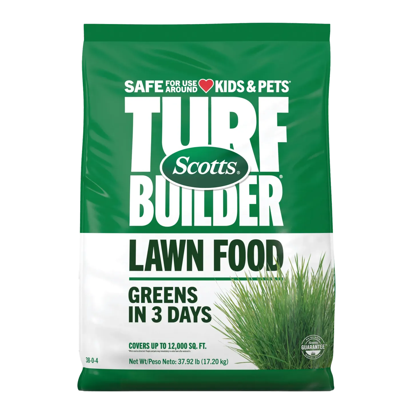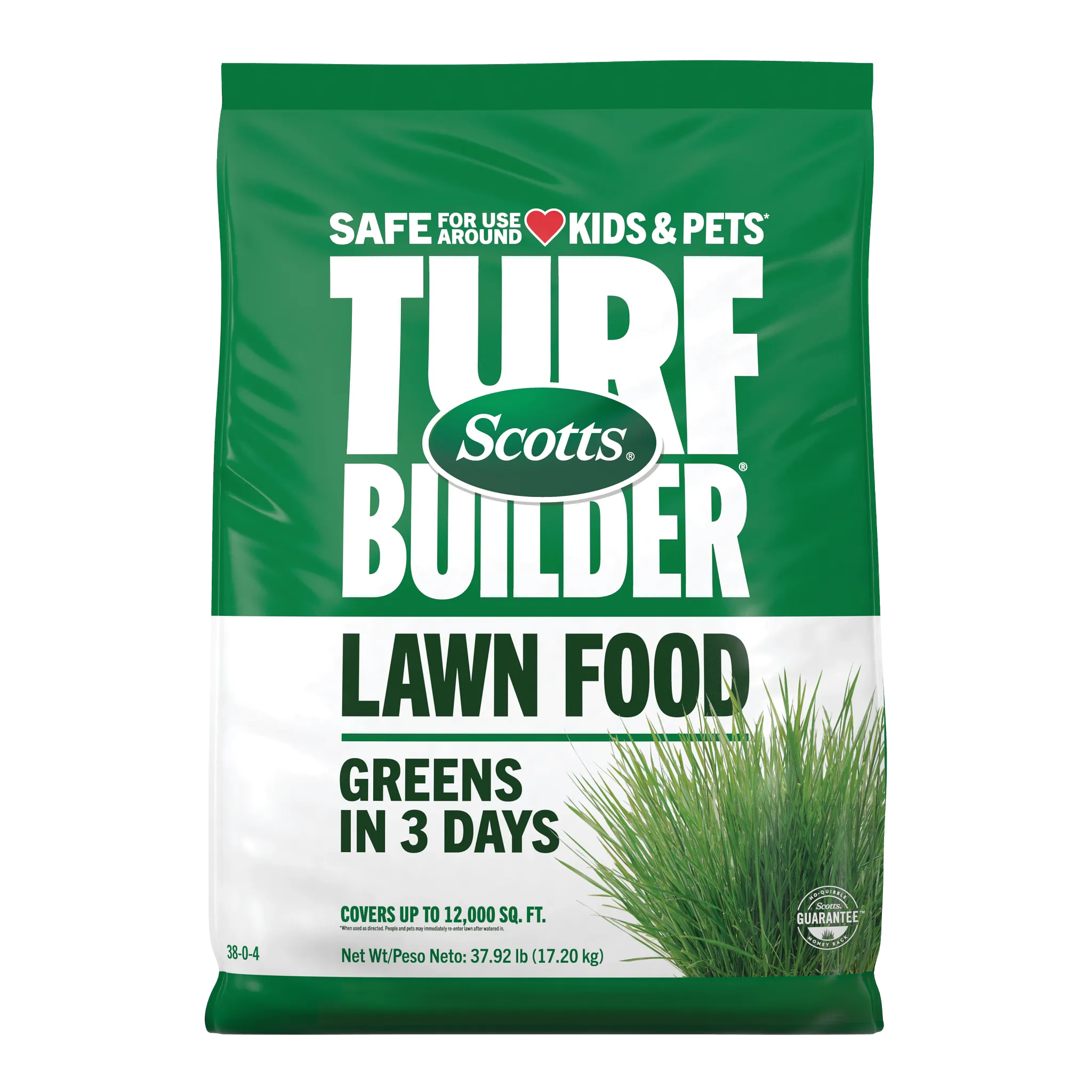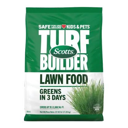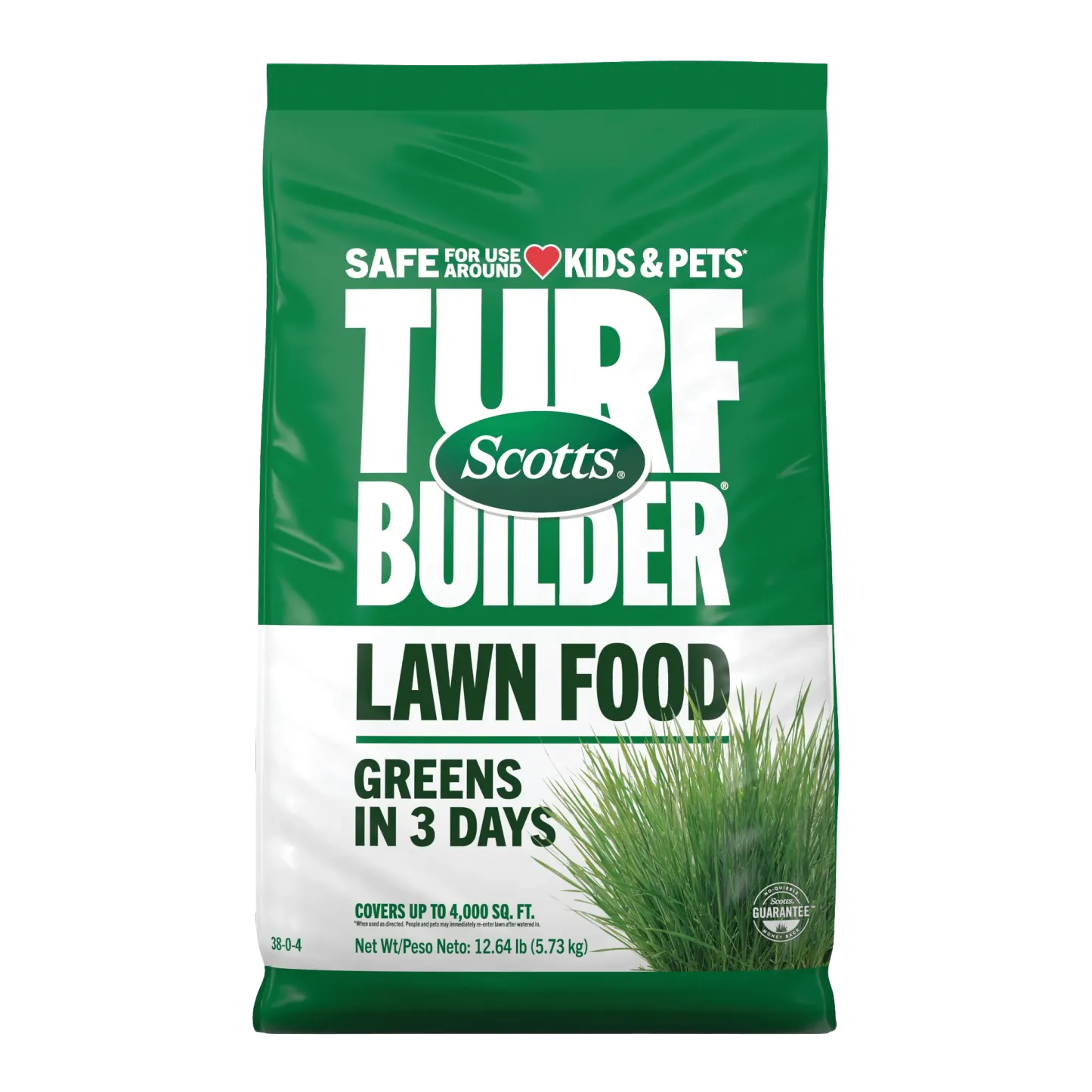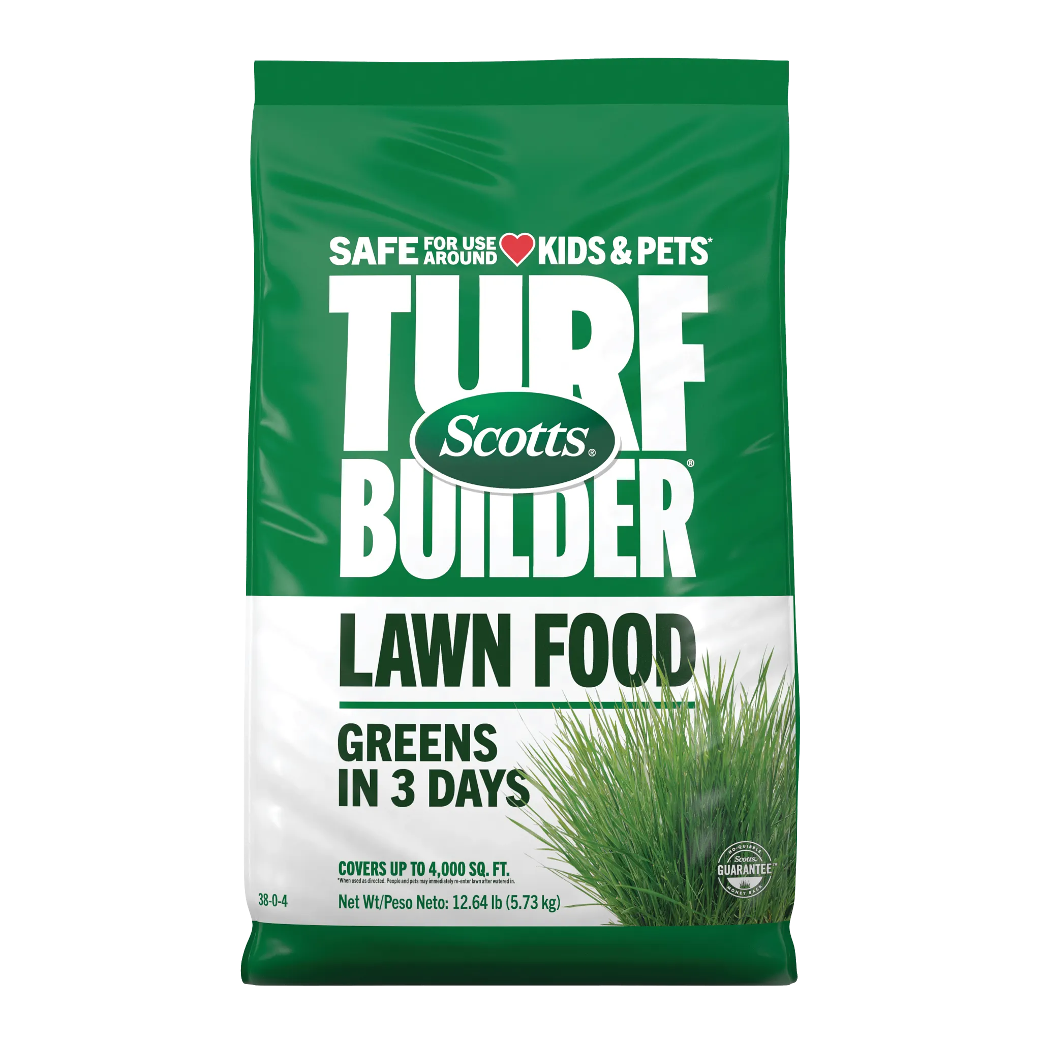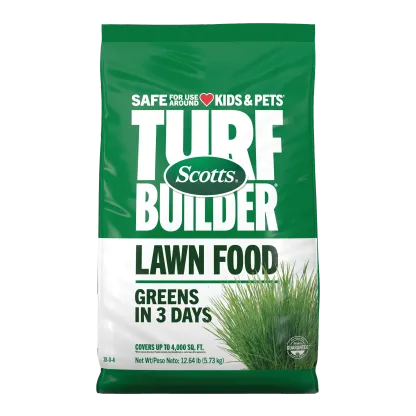 Get a greener lawn, fast. Scotts® Turf Builder® Lawn Food provides a visible green-up in 3 days (when used as directed). It's safe for kids and pets to be on the lawn right after you water it in. Application is easy: just set your Scotts® spreader and apply to a dry lawn. One bag covers 4,000 sq. ft. For an even deeper green, use the 'Max Greening' rate (covers 3,000 sq. ft.; restrictions apply, see label for details). Afterwards, just water it in and get back to enjoying your yard. For best results, remember to feed 4 times a year.
