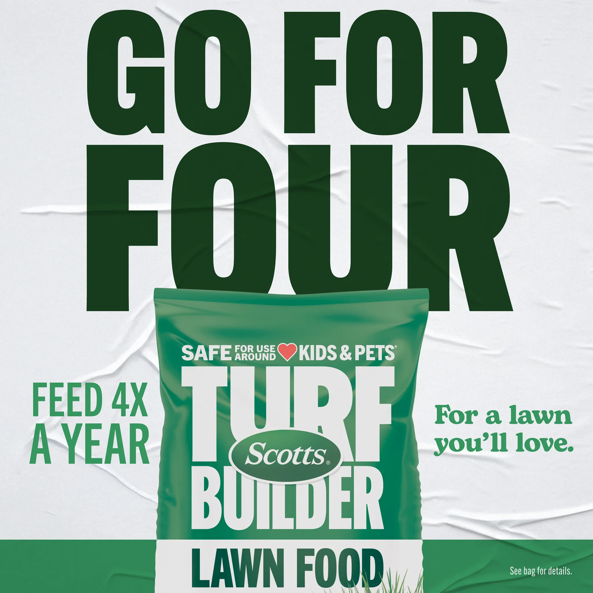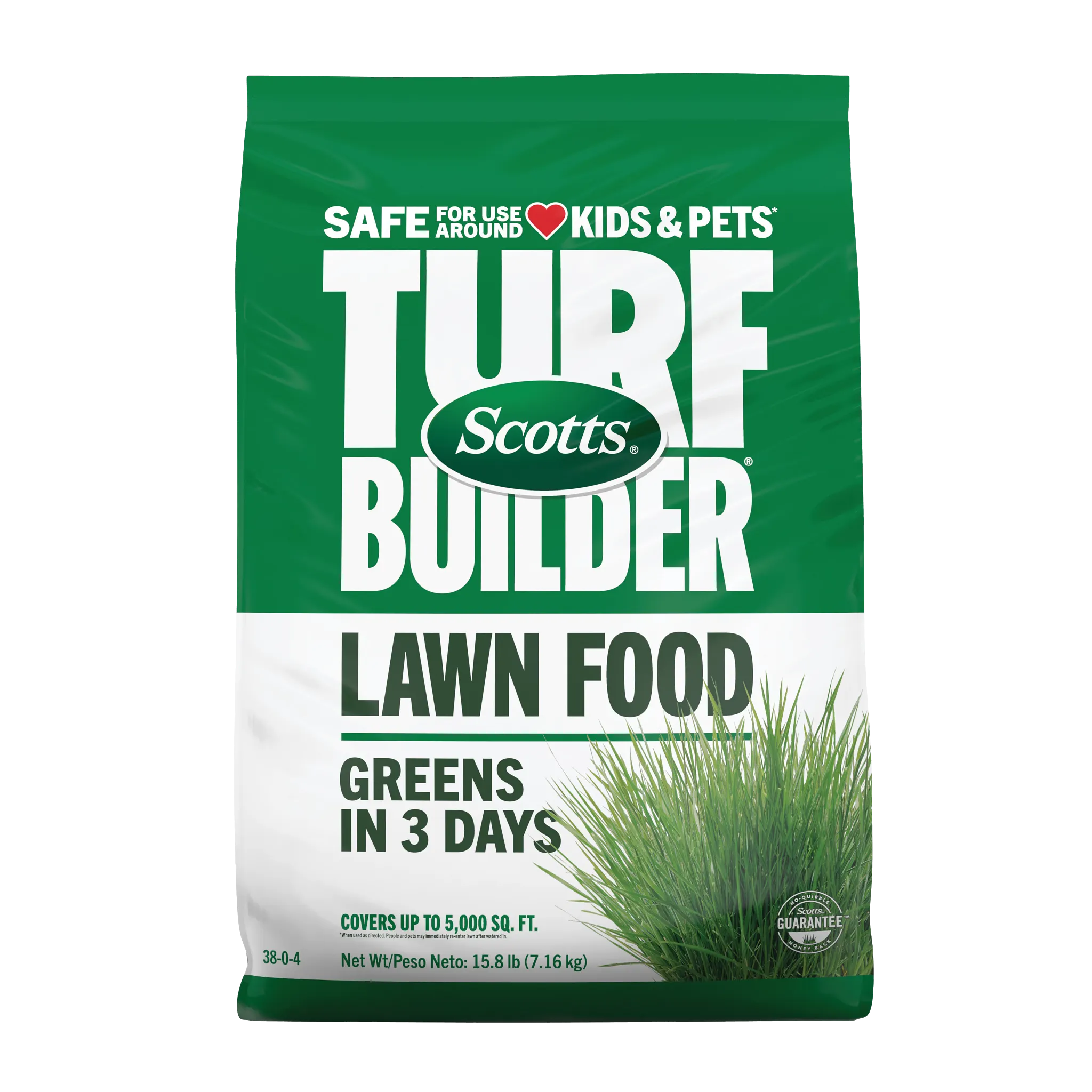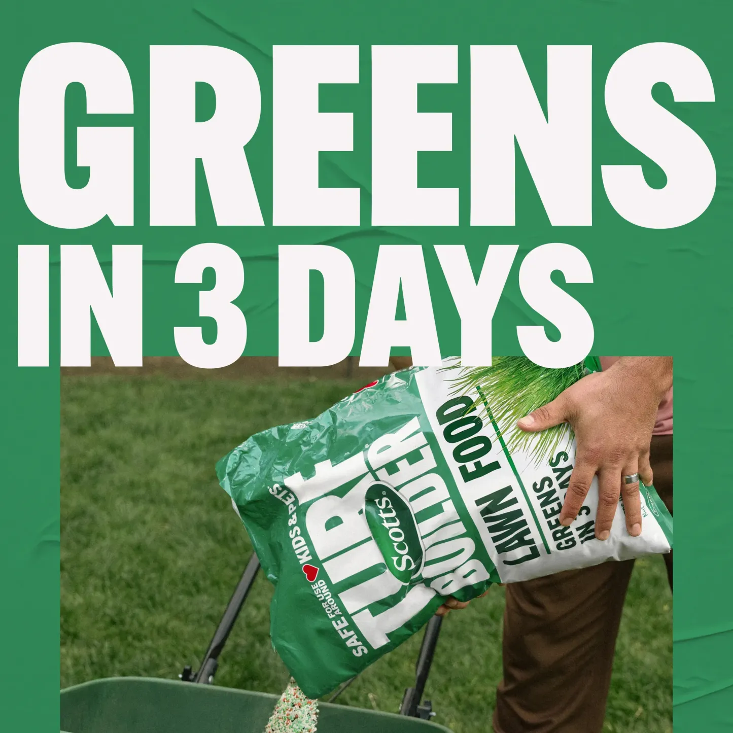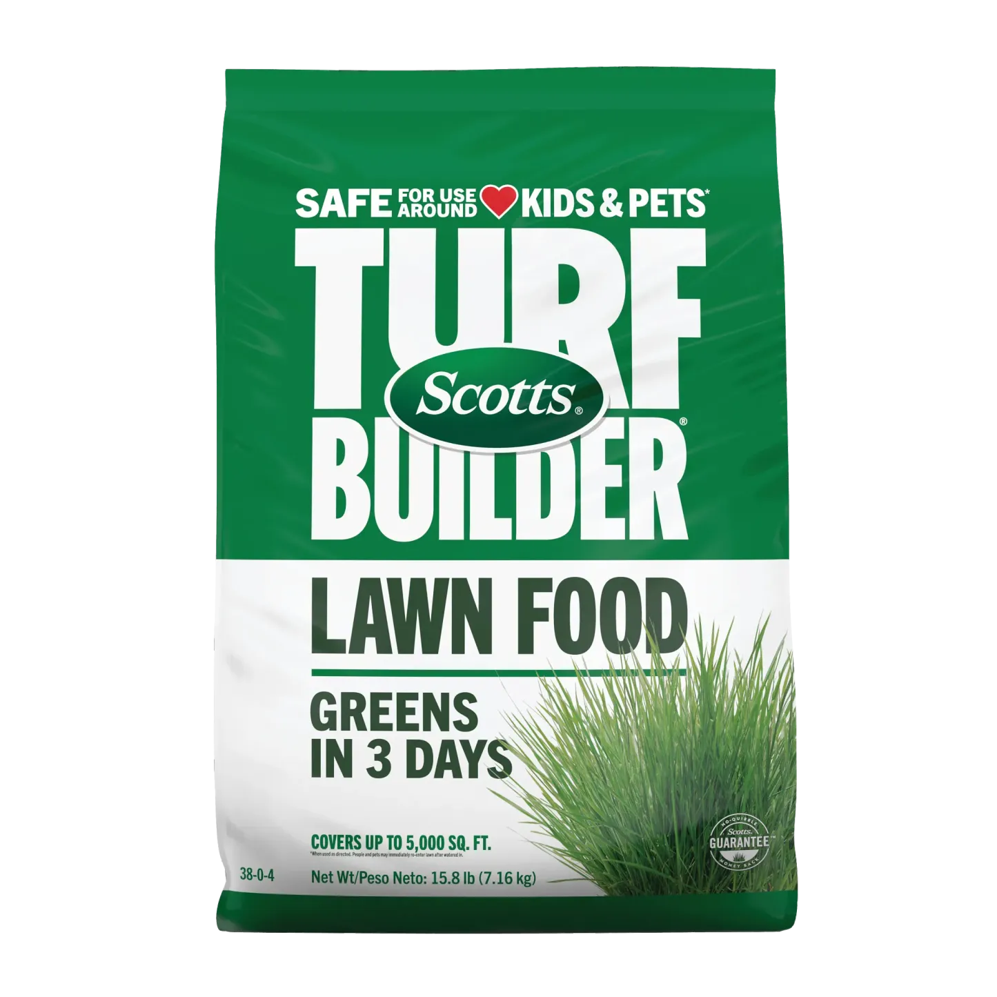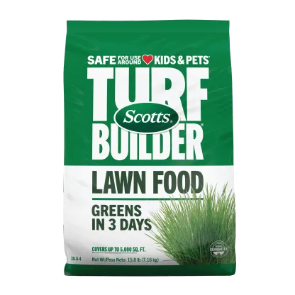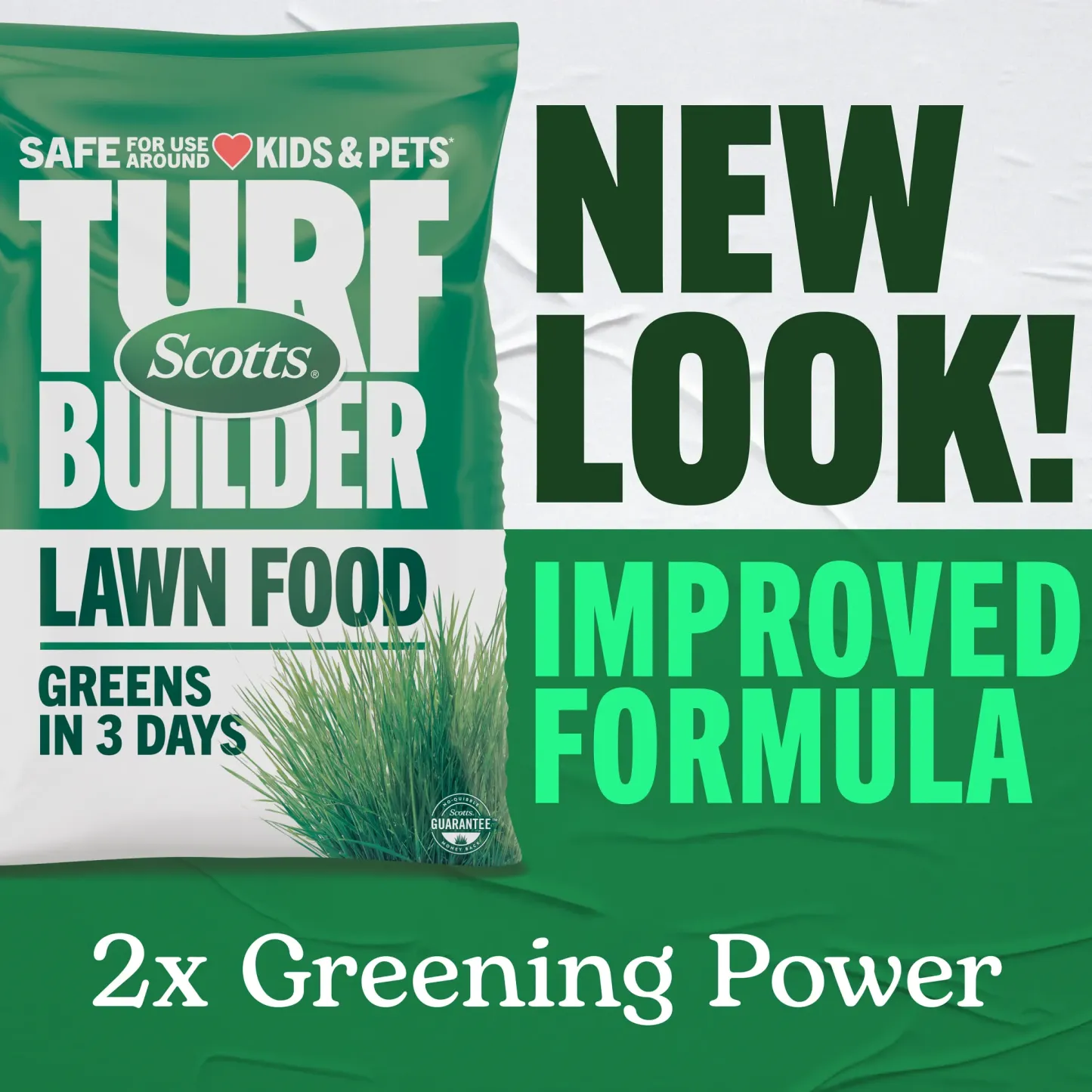 Get a greener lawn, fast. Scotts® Turf Builder® Lawn Food provides a visible green-up in 3 days (when used as directed). It's safe for kids and pets to be on the lawn right after you water it in. Application is easy: just set your Scotts® spreader and apply to a dry lawn. One bag covers 4,000 sq. ft. For an even deeper green, use the 'Max Greening' rate (covers 3,000 sq. ft.; restrictions apply, see label for details). Afterwards, just water it in and get back to enjoying your yard. For best results, remember to feed 4 times a year.