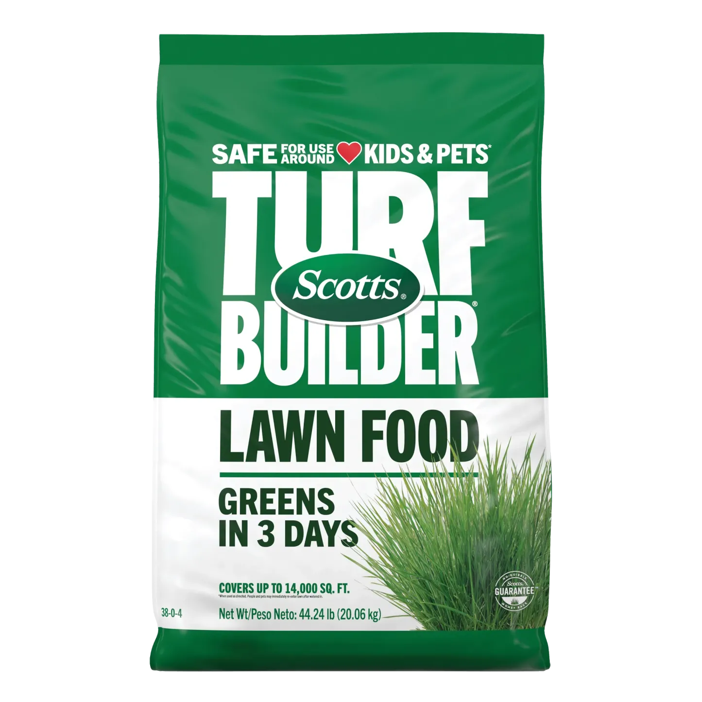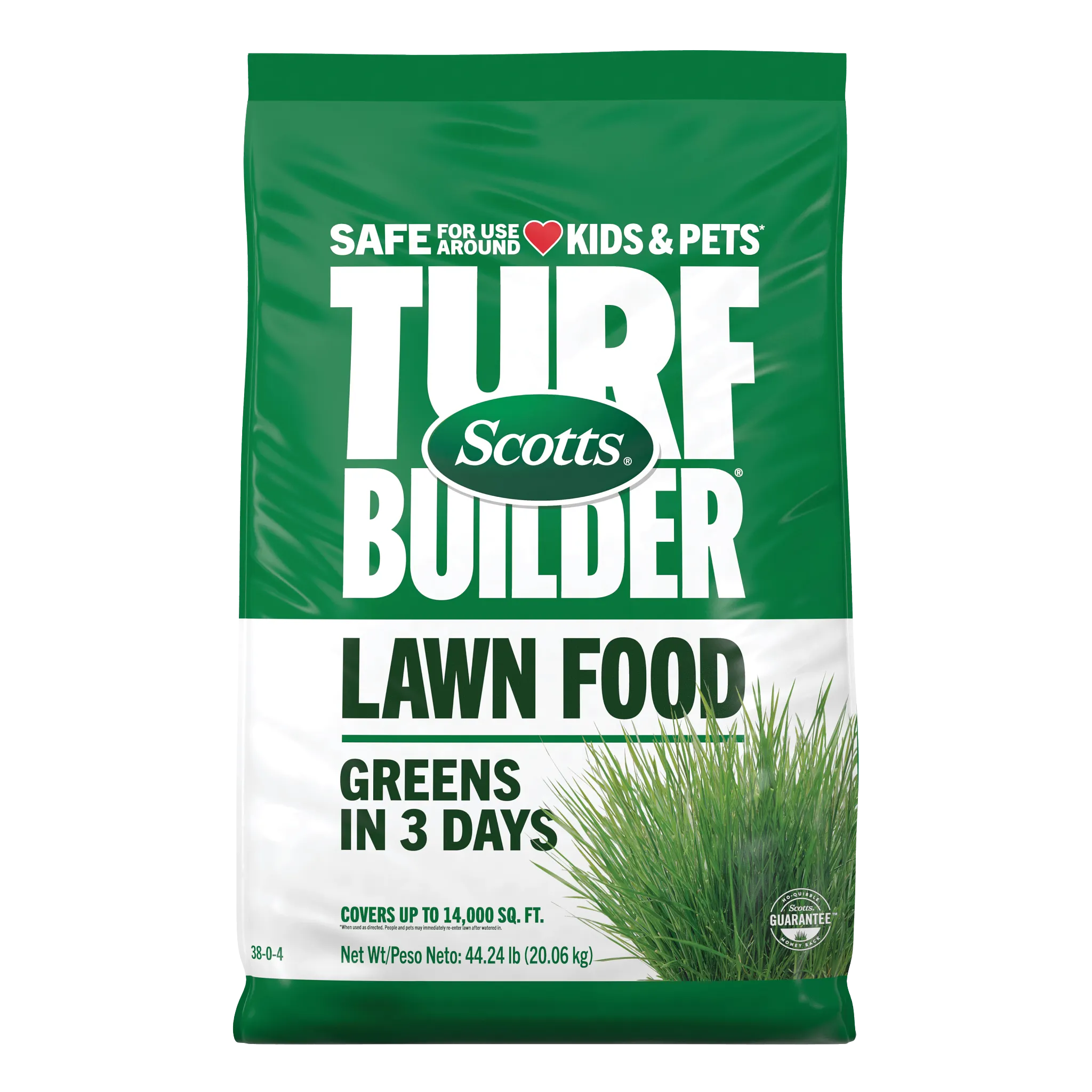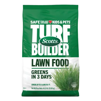 Get a greener lawn, fast. Scotts® Turf Builder® Lawn Food provides a visible green-up in 3 days (when used as directed). It's safe for kids and pets to be on the lawn right after you water it in. Application is easy: just set your Scotts® spreader and apply to a dry lawn. One bag covers 4,000 sq. ft. For an even deeper green, use the 'Max Greening' rate (covers 3,000 sq. ft.; restrictions apply, see label for details). Afterwards, just water it in and get back to enjoying your yard. For best results, remember to feed 4 times a year.