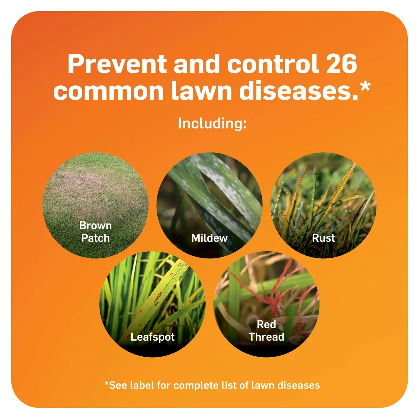 - Controls 26 listed lawn diseases, including brown patch, pythium blight, stem and stripe rust, gray and pink snow mold, necrotic ring spot, red thread, powdery mildew, and anthracnose