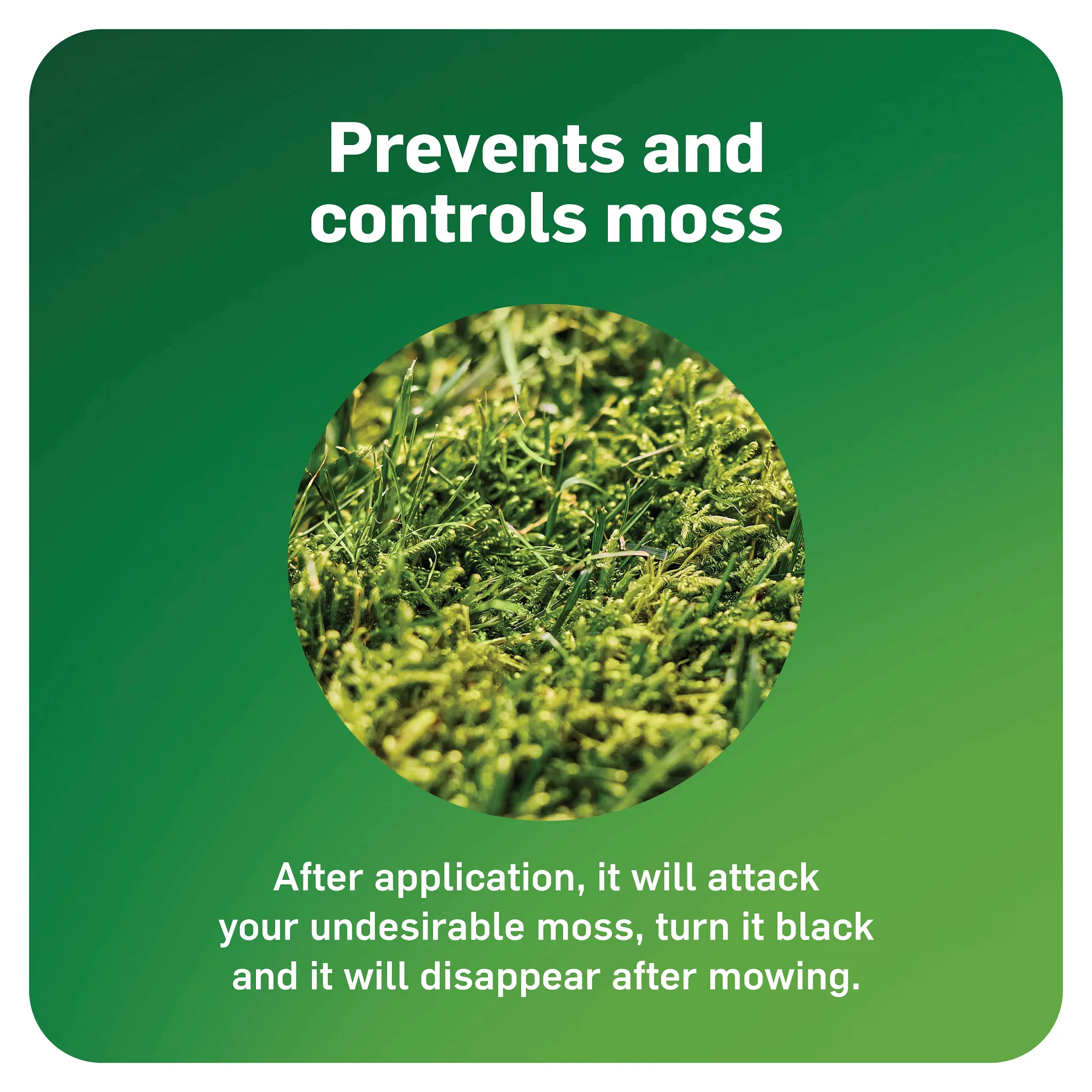 - Kills moss and thickens grass to help prevent future moss problems