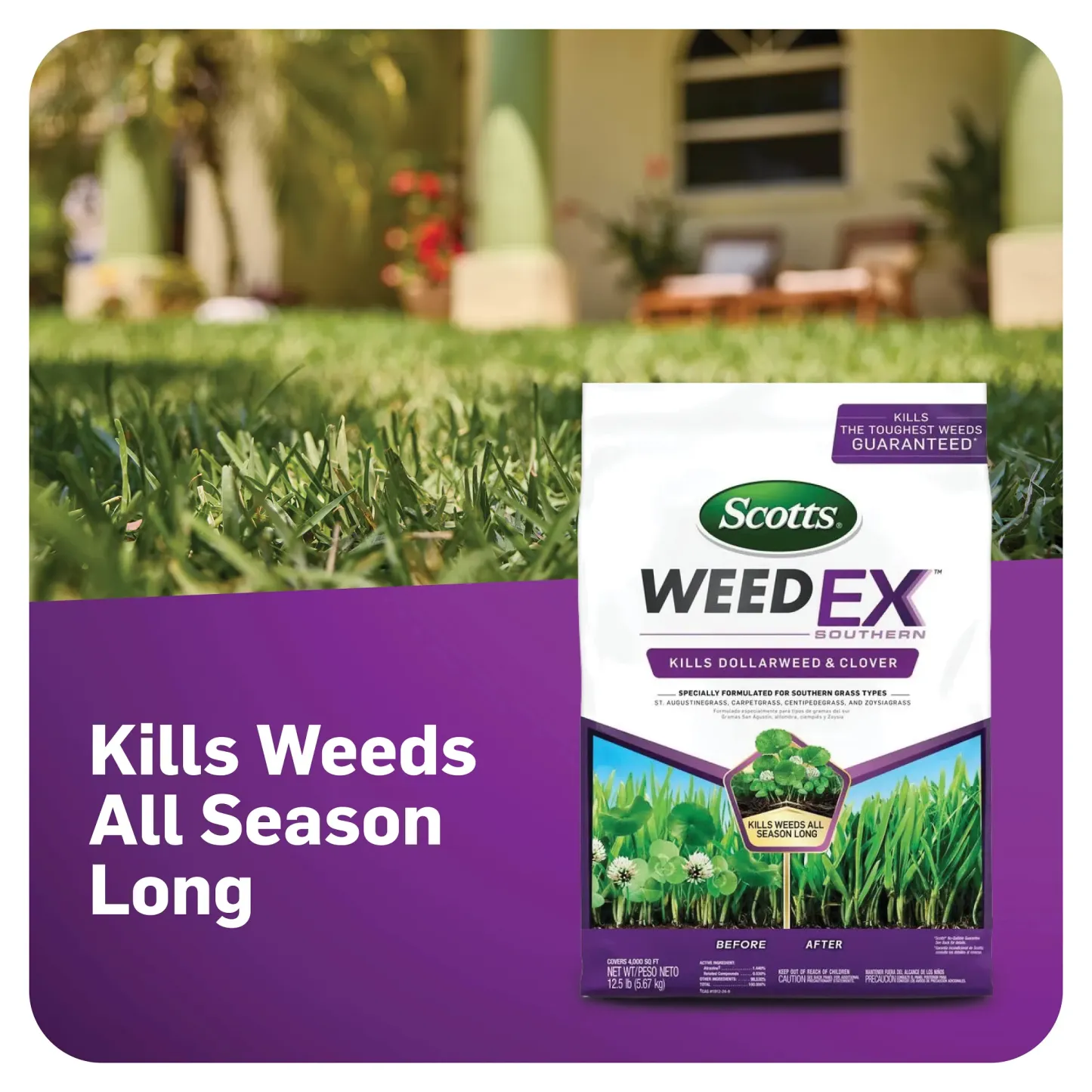 - Scotts® WeedEx™ Southern has the strength to kill tough weeds like dollarweed and clover all season long