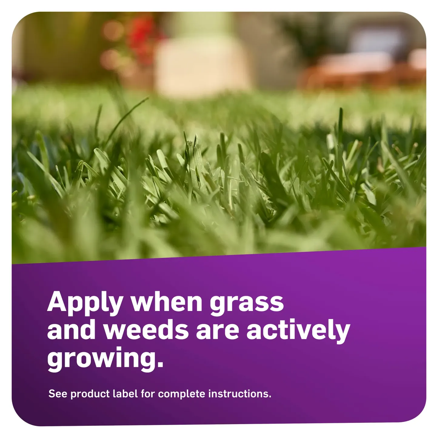 - Apply when grass and weeds are actively growing.