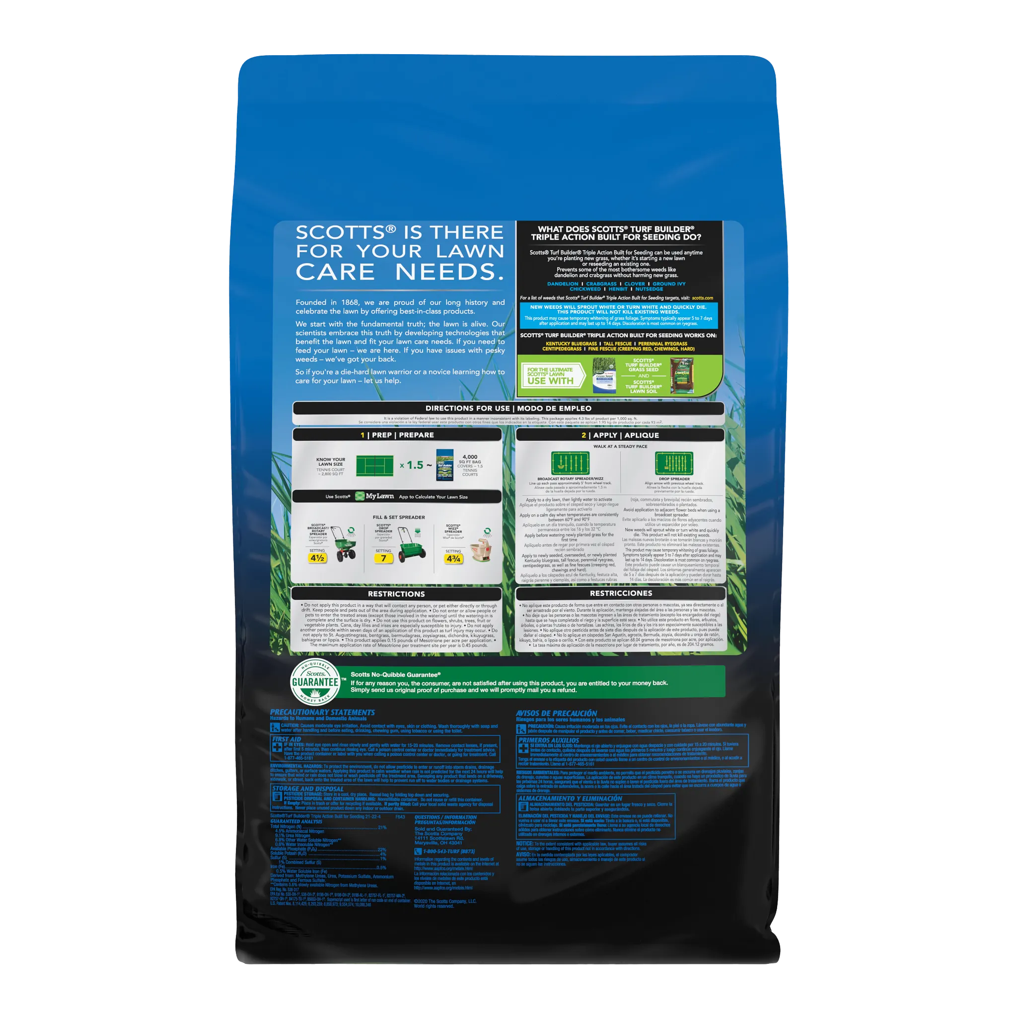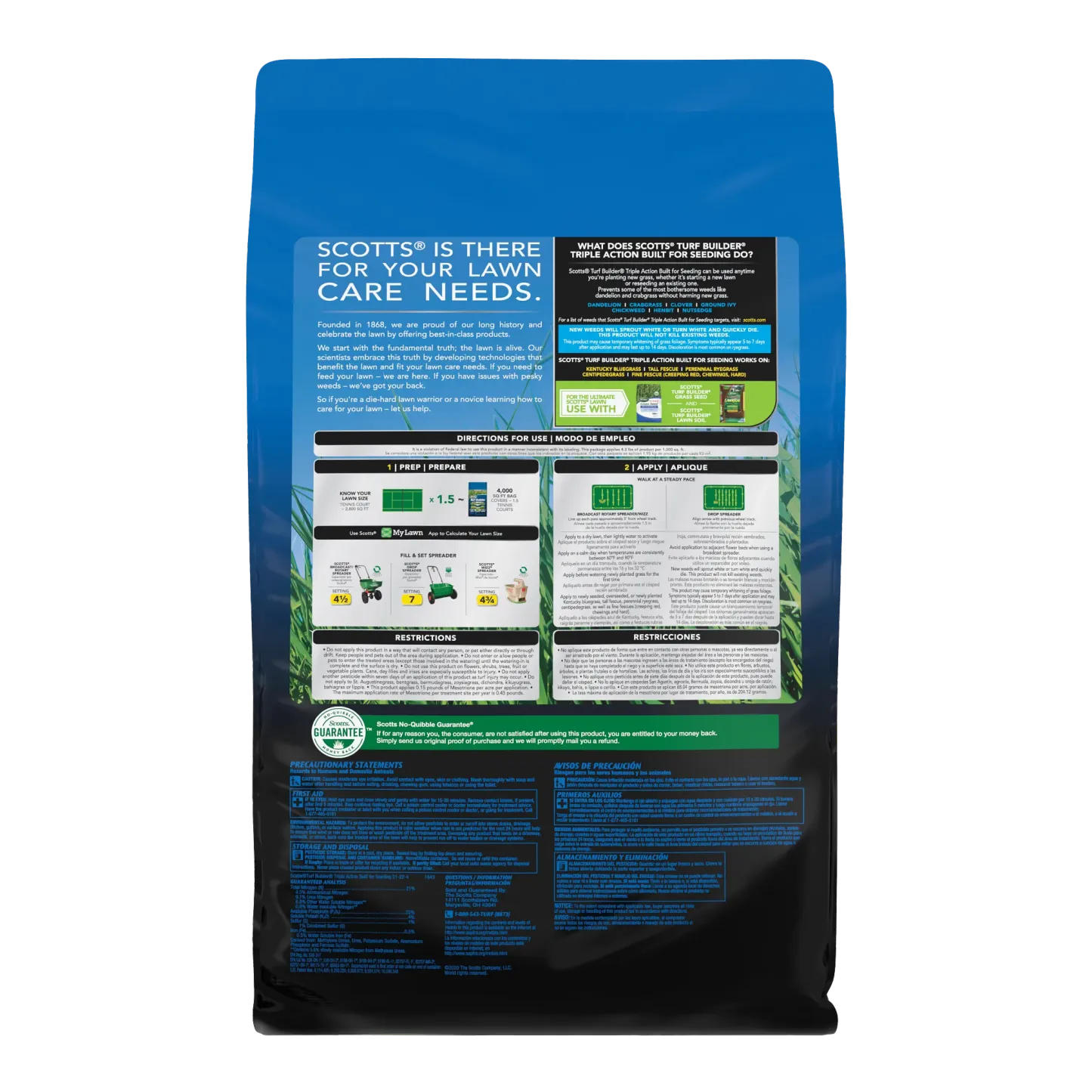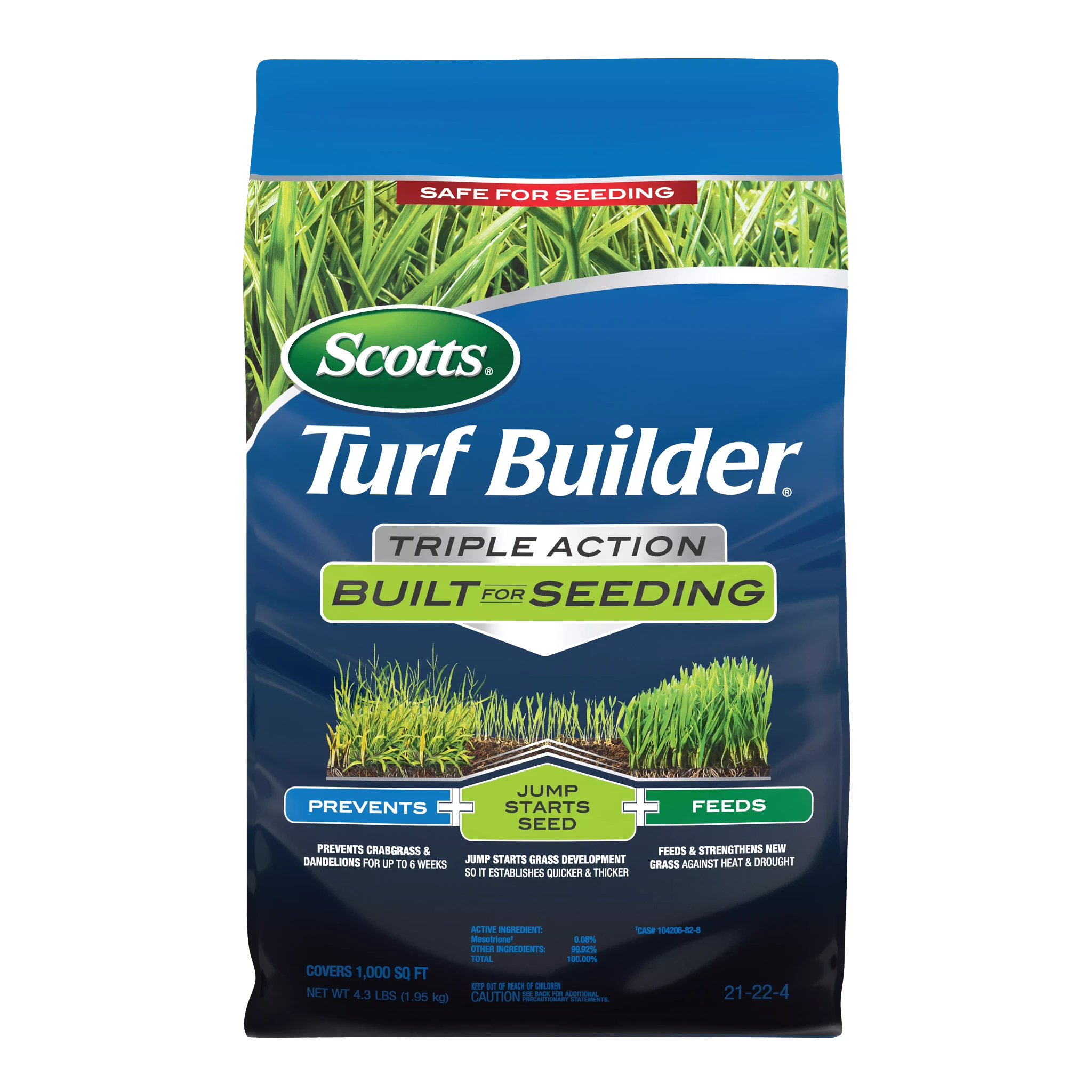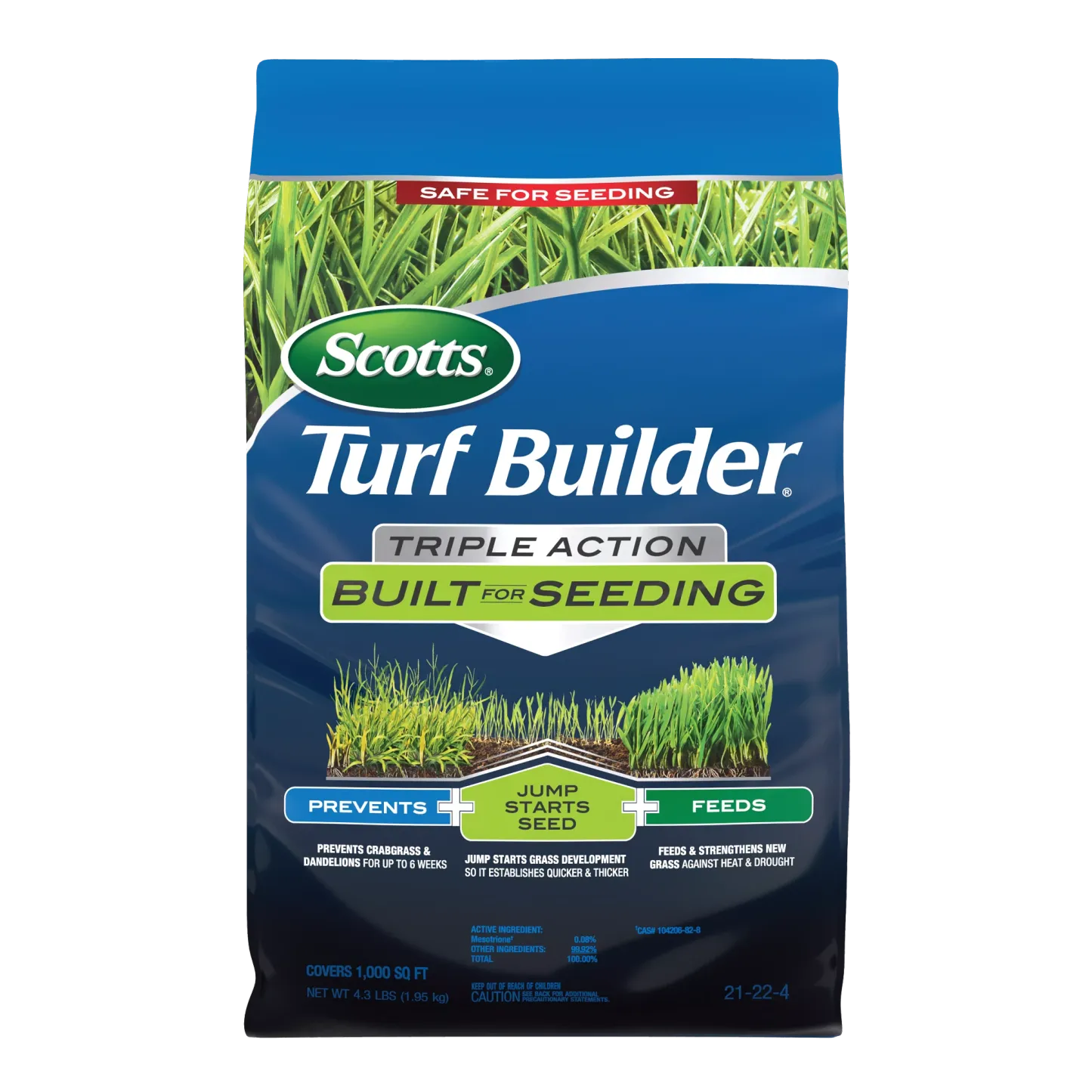 - One 4.3 lb. bag of Scotts® Turf Builder® Triple Action Built For Seeding covers 1,000 sq. ft.