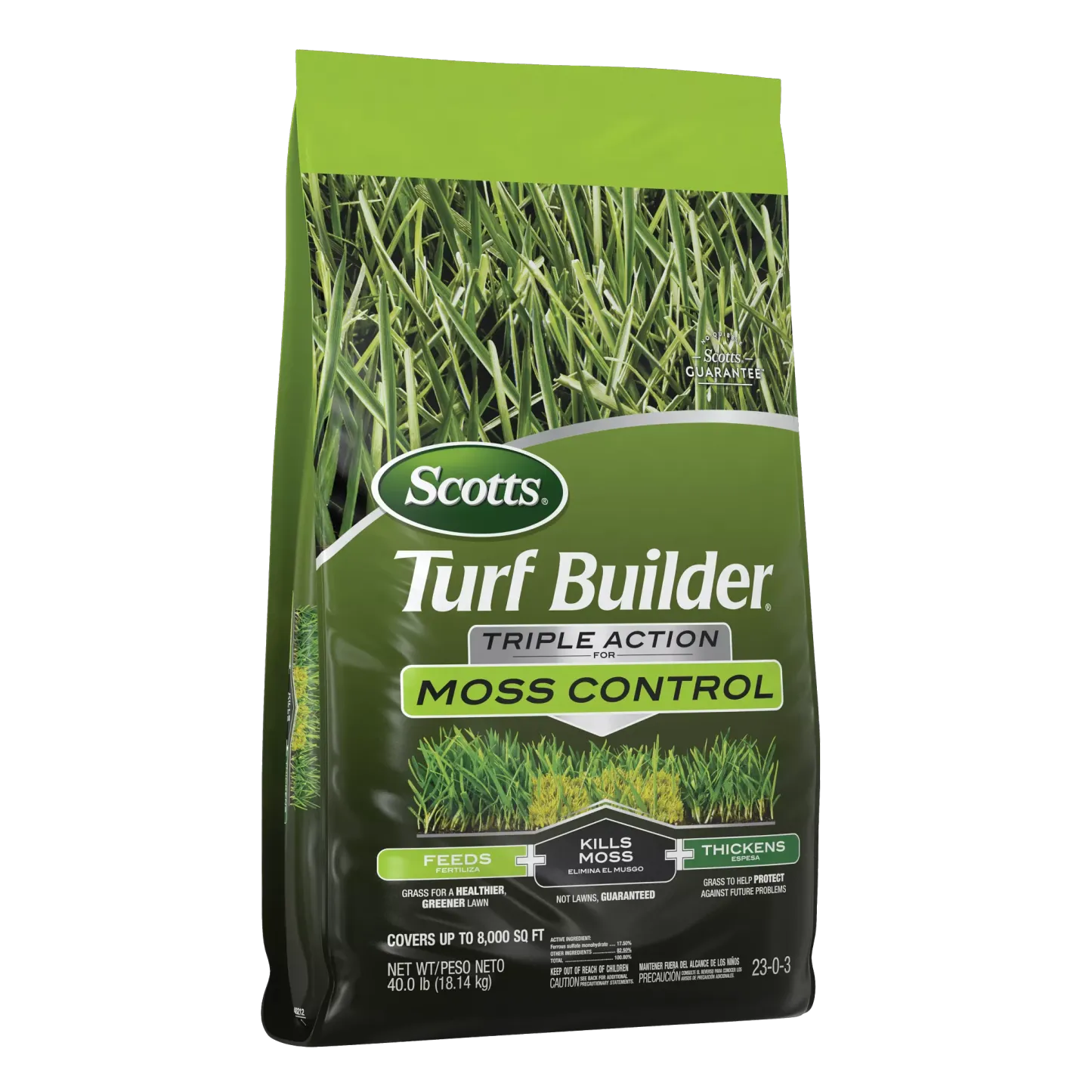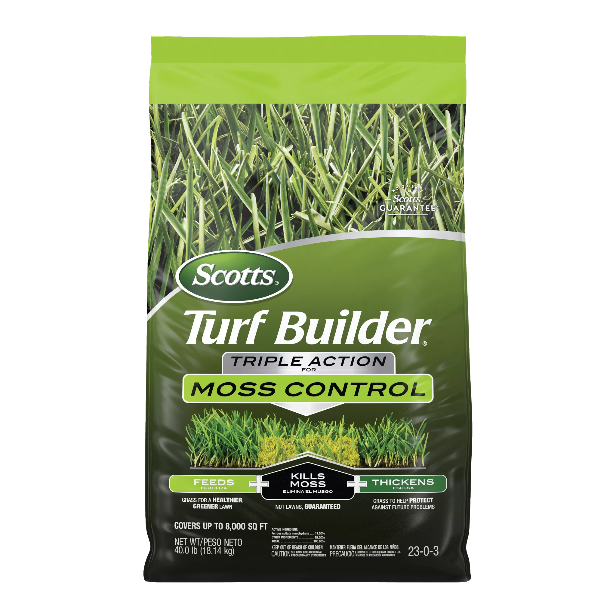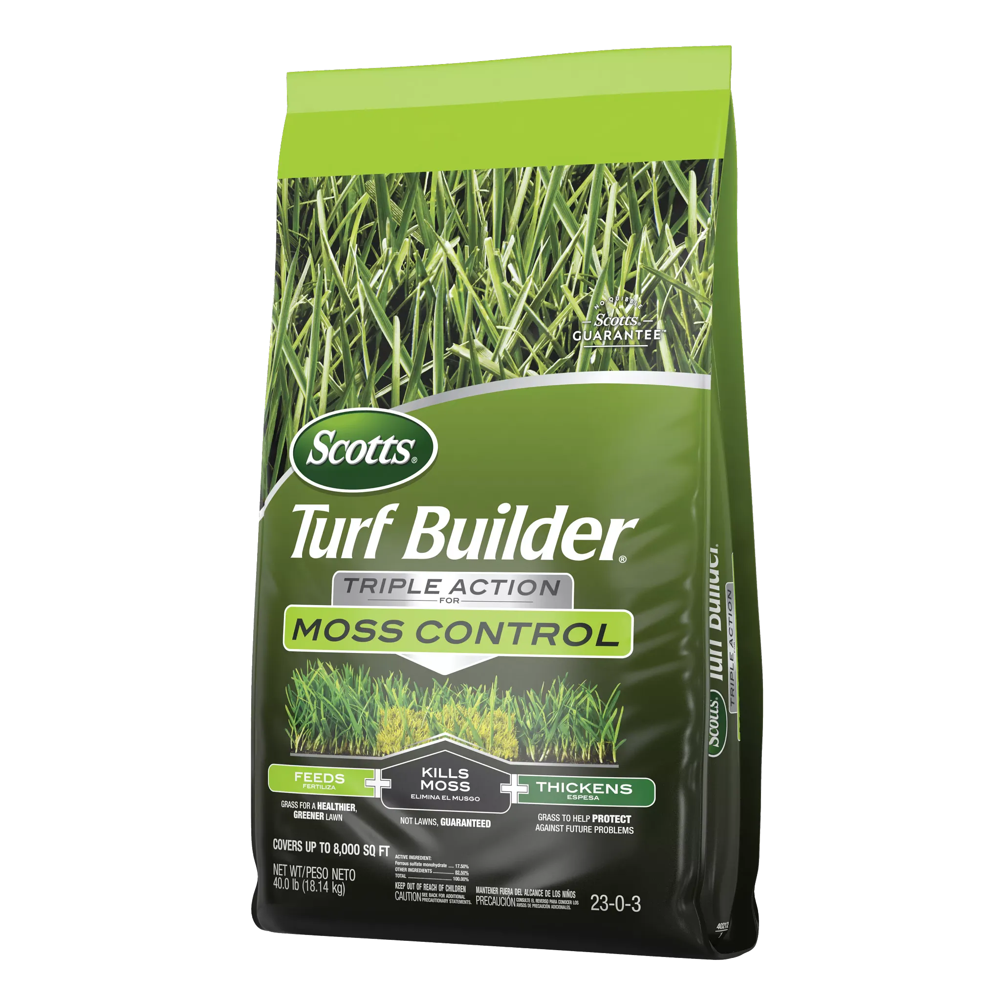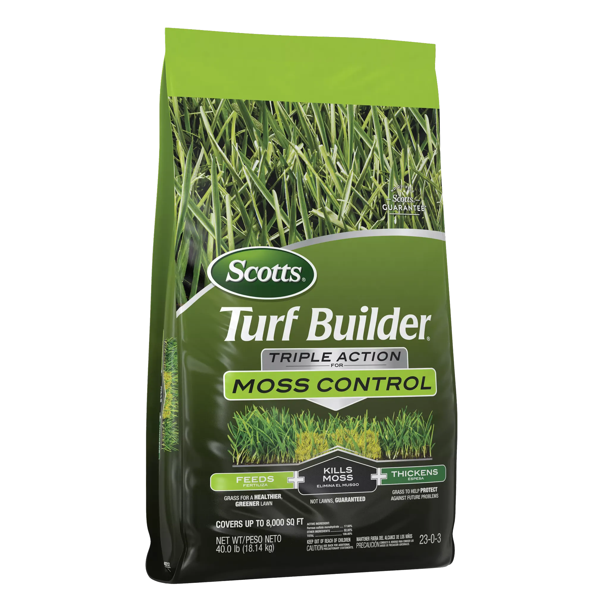 - Scotts® Turf Builder® Triple Action for Moss Control is best applied when the lawn is moist and tall grass has been mowed to expose low growing moss.
