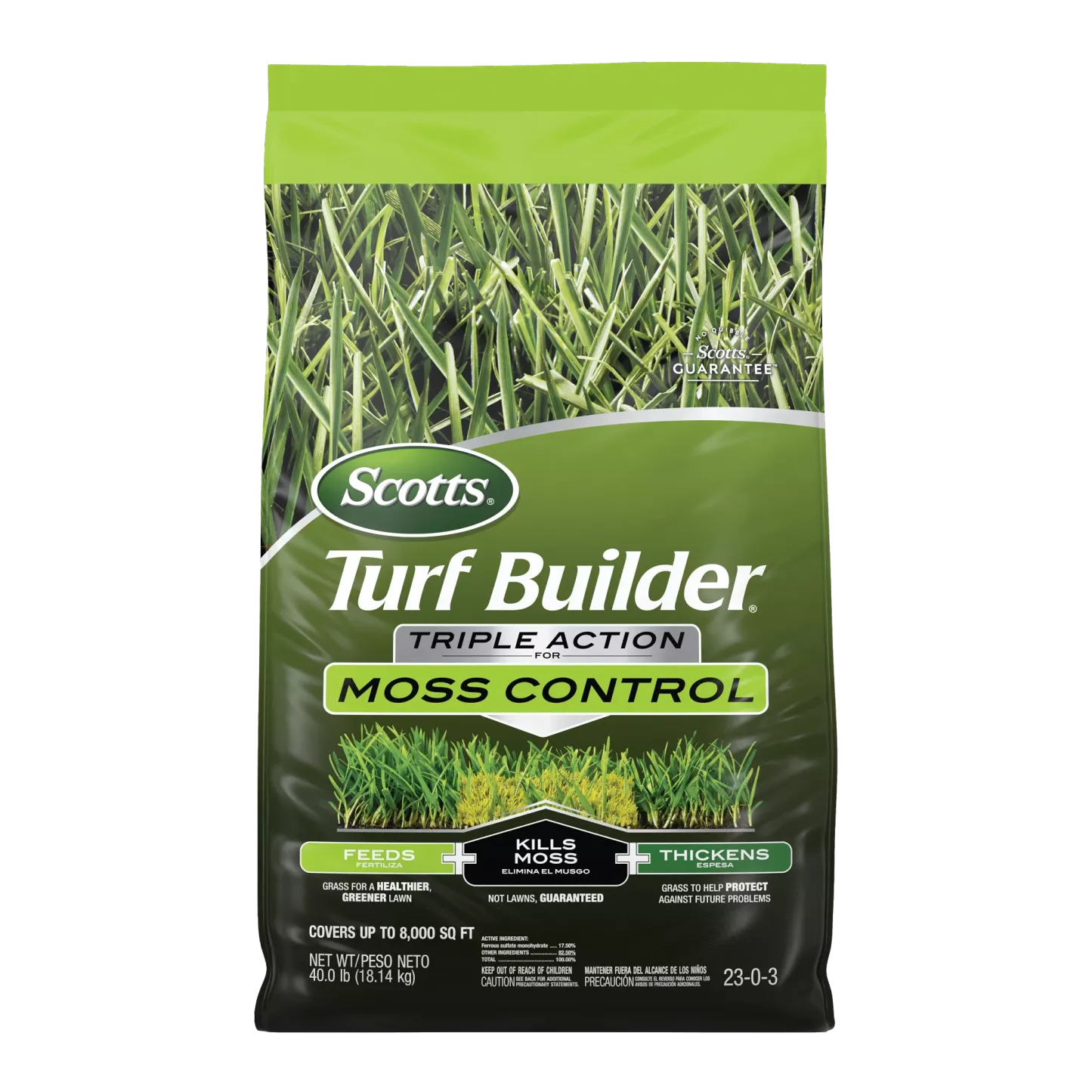 - Scotts® Turf Builder® Triple Action for Moss Control is best applied when the lawn is moist.