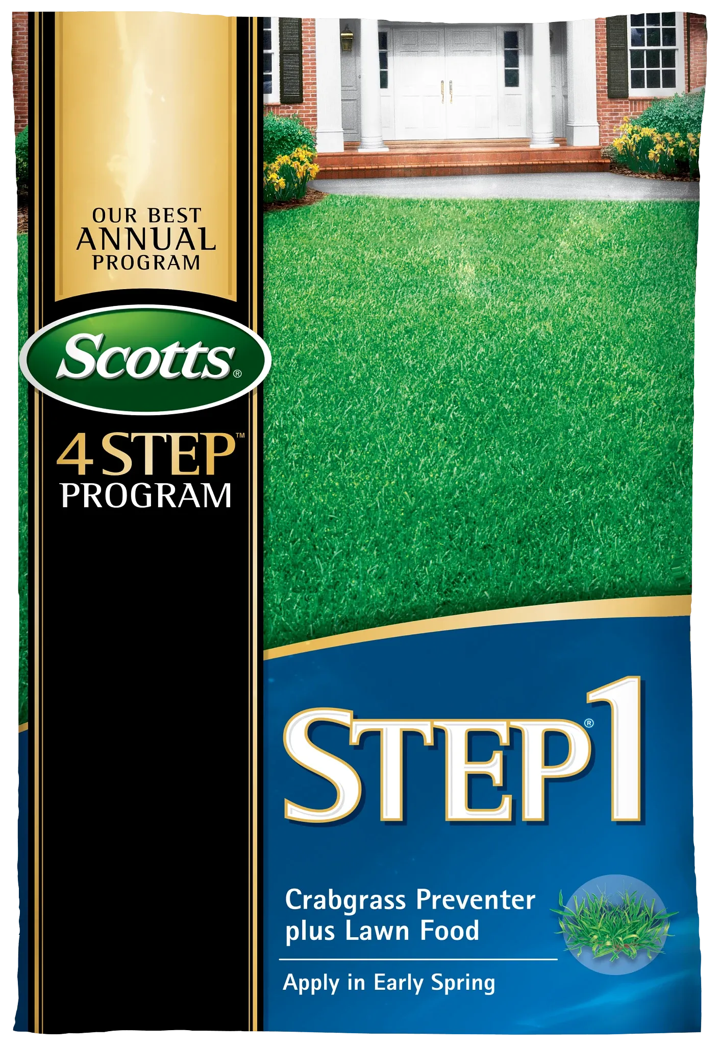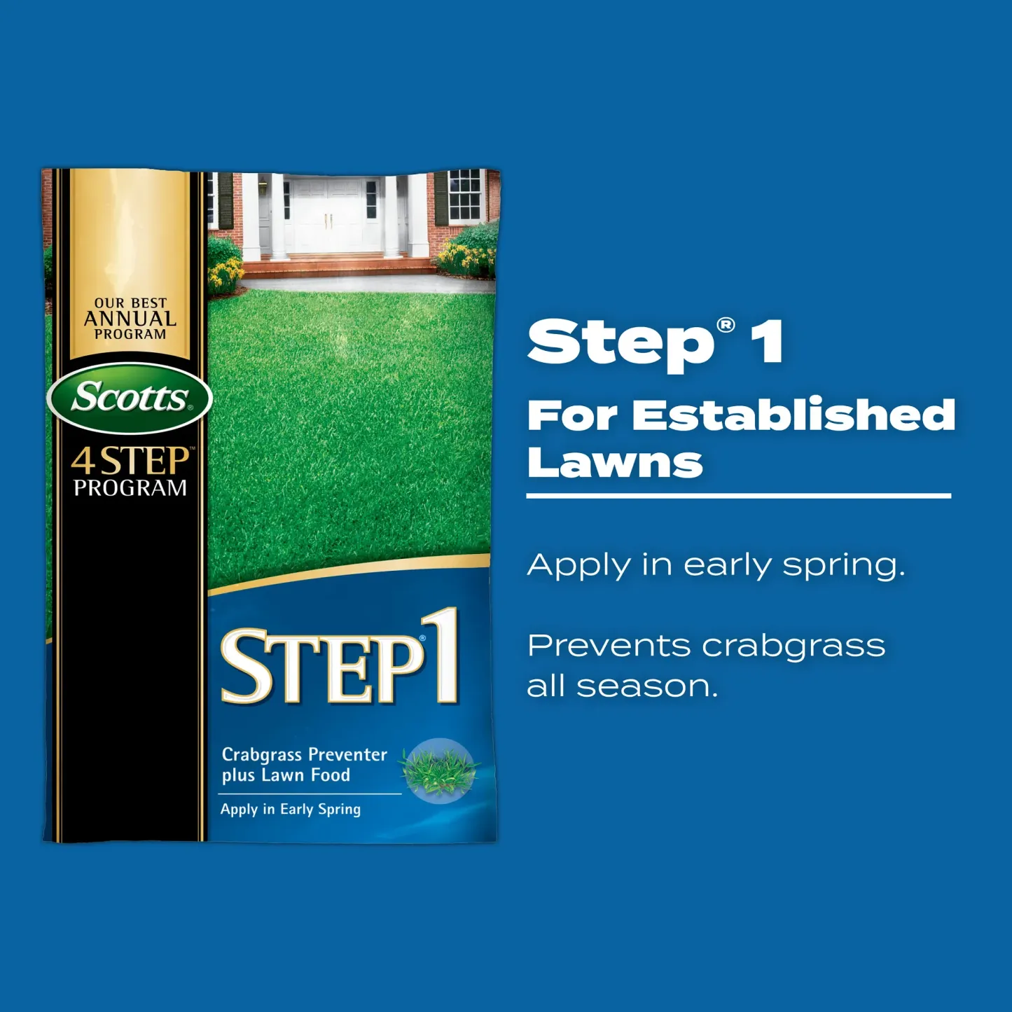 Scotts® Step® 1 Crabgrass Preventer Plus Lawn Food can improve a lawn's ability to absorb water and nutrients. Apply in early spring for a fast green-up after winter. It also controls crabgrass for up to 4 months! Utilize the entire Scotts® 4 Step program for a better lawn.