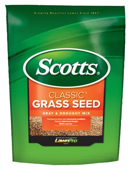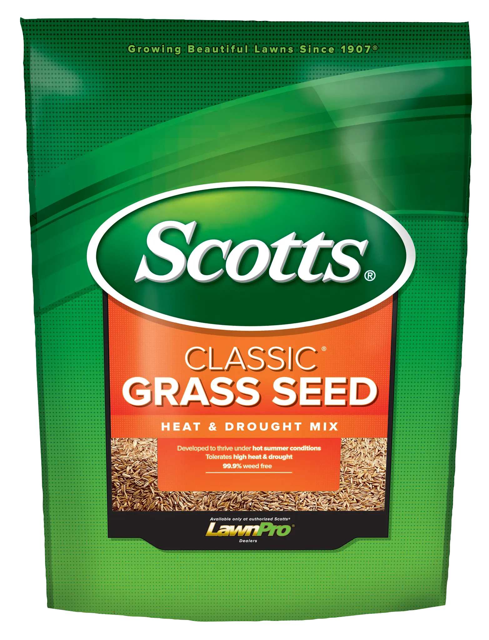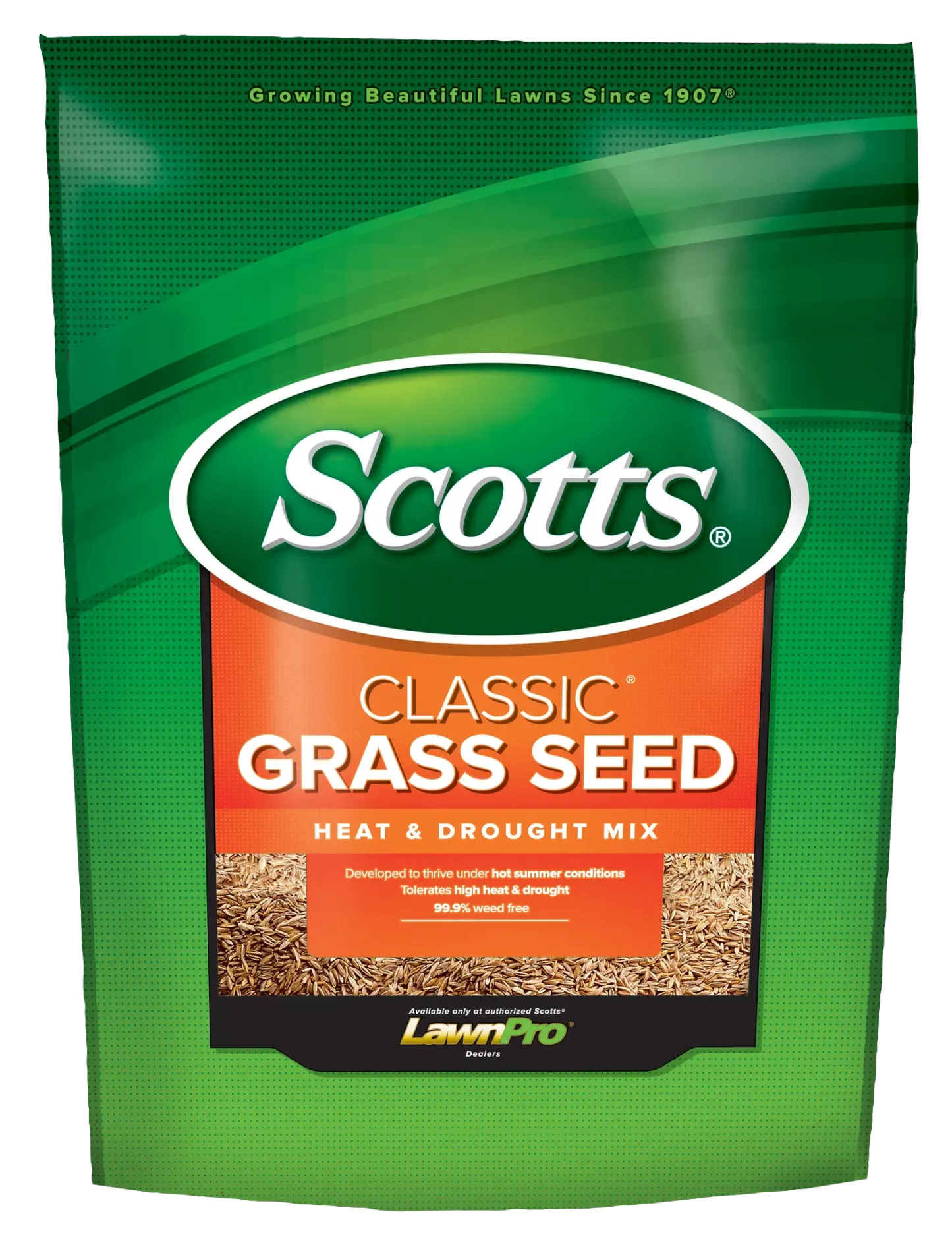 Sometimes your lawn needs a little bit more help surviving under the hot summer sun. Scotts® Classic® Grass Seed Heat & Drought Mix is specially formulated to tolerate heat and drought. This unique mix was developed to thrive under hot summer conditions.