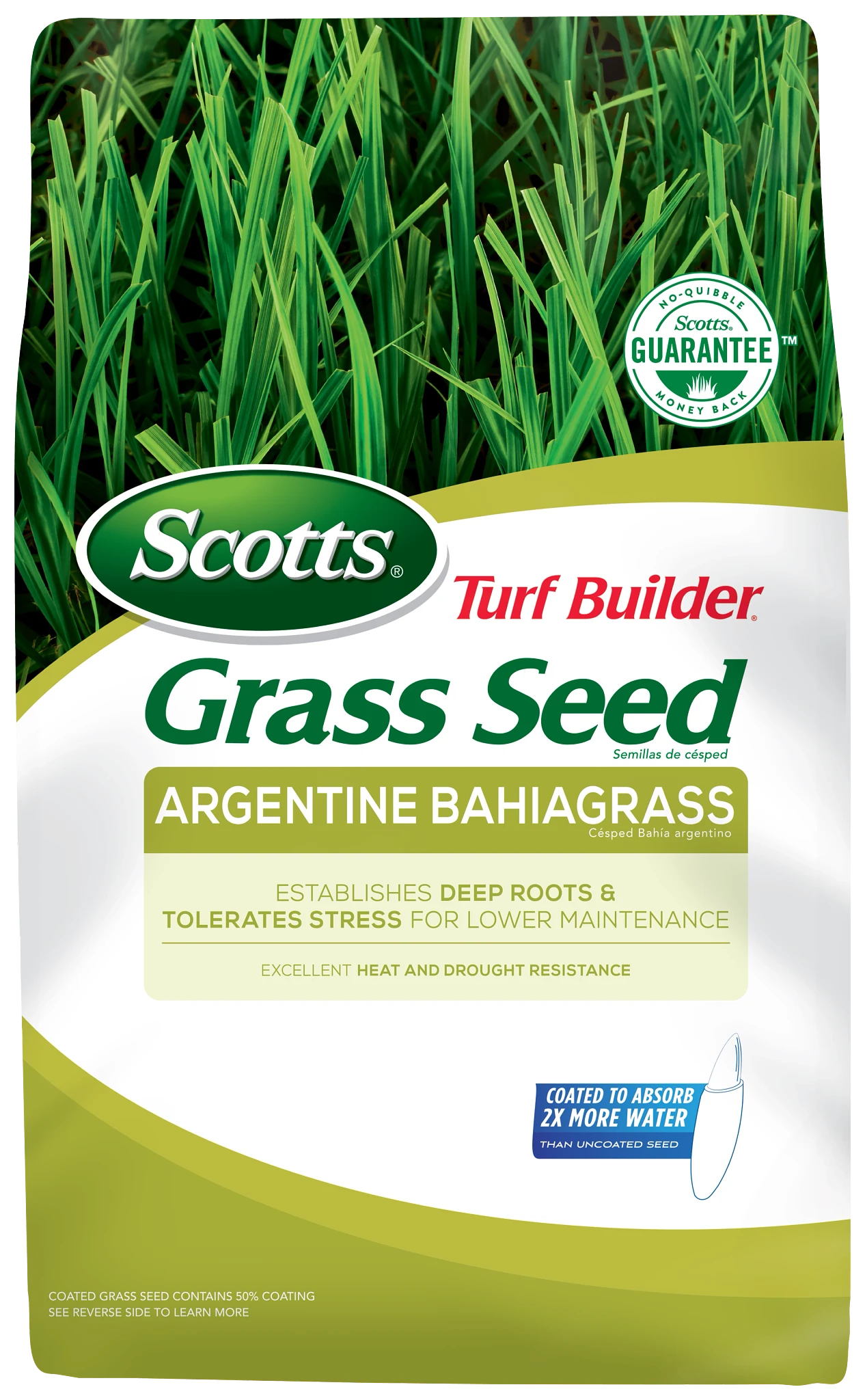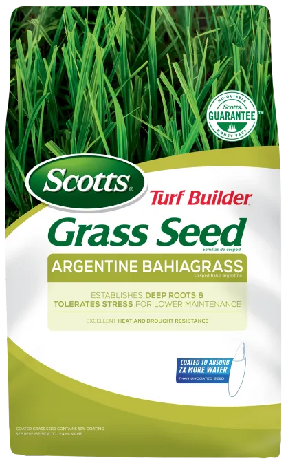 - Scotts® Turf Builder® Grass Seed Argentine Bahiagrass establishes deep roots and tolerates stress for lower maintenance, and provides excellent heat and drought resistance