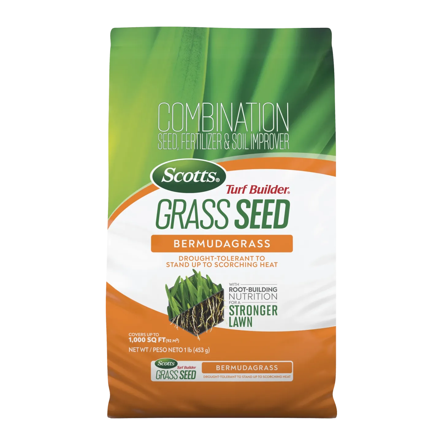 - The redesigned Scotts® Turf Builder® Grass Seed Bermudagrass is drought-tolerant to stand up to scorching heat and features Root-Building Nutrition for a stronger lawn