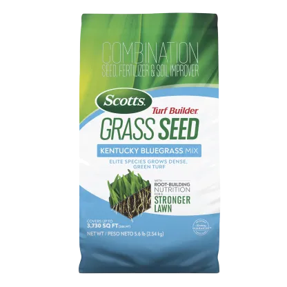 There's just something about a classic Kentucky bluegrass lawn—it's thick, it's green, and it just looks right. With Scotts Turf Builder Grass Seed Kentucky Bluegrass Mix, you can get that look for your own yard. We've started with our best elite Kentucky bluegrass seed, known for its ability to grow a dense and durable turf. Then, we made it even better by adding our Root-Building Nutrition. It's our special 3-in-1 blend of seed, fertilizer, and soil improver that helps your lawn grow deep, strong roots. It's everything you need to get a beautiful, resilient lawn that you're going to enjoy living on.