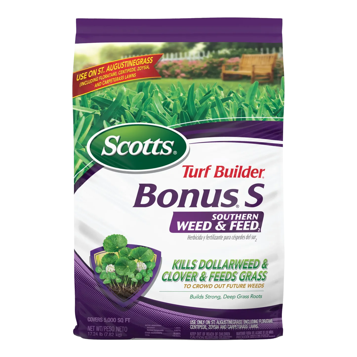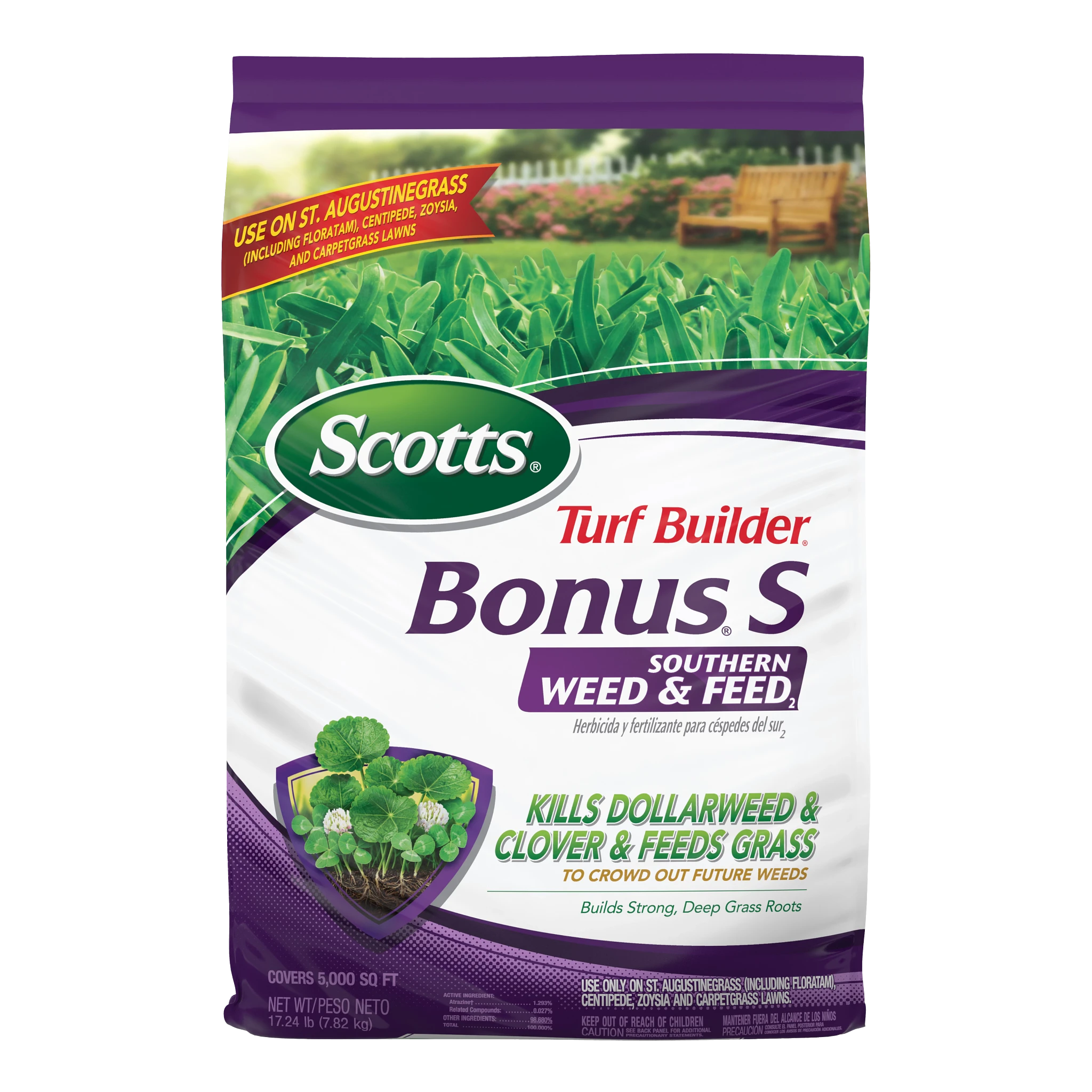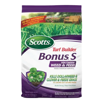 If you've got a Southern lawn, you know that weeds like dollarweed can be a real pain. That's where Scotts Turf Builder Bonus S Southern Weed & Feed₂ comes in. We developed this product specifically for lawns like yours—St. Augustinegrass, centipedegrass, and zoysiagrass. It's a 2-in-1 that clears out tough listed weeds and gives your lawn a hearty feeding to help it grow thick and strong. A thicker lawn doesn't just look good; it's the best way to keep new weeds from showing up. It's the simple way to get the upper hand on weeds and get back to enjoying your beautiful Southern lawn.