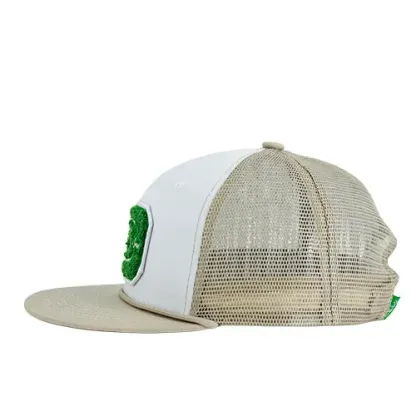 - 6-Panel High Crown Structured Flat Brim Trucker Hat
