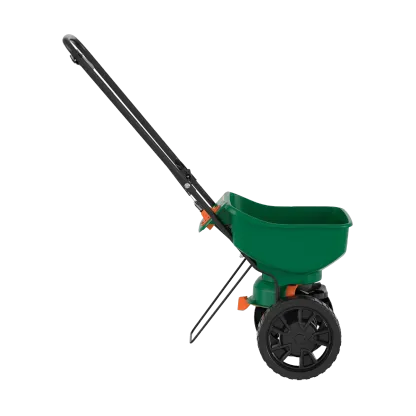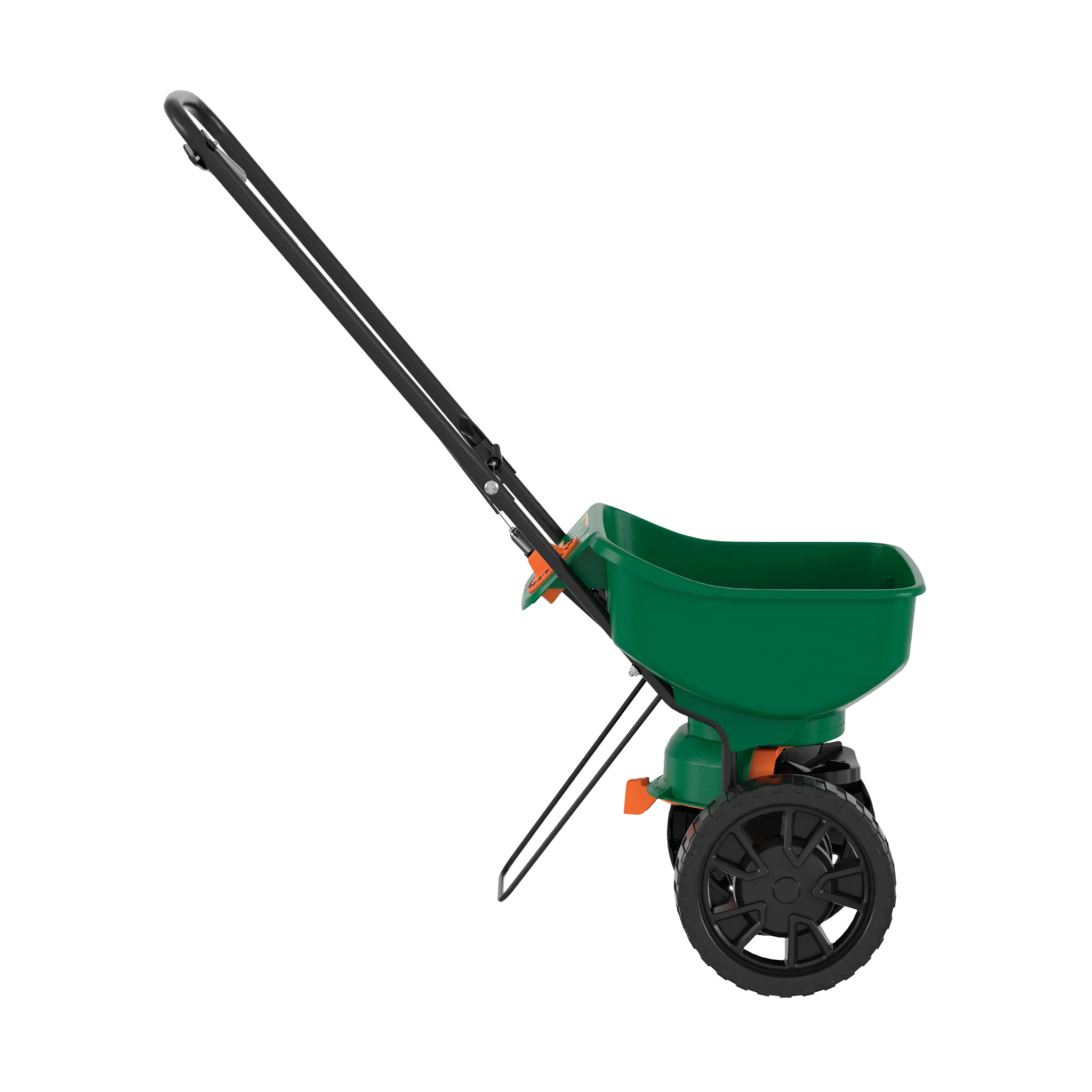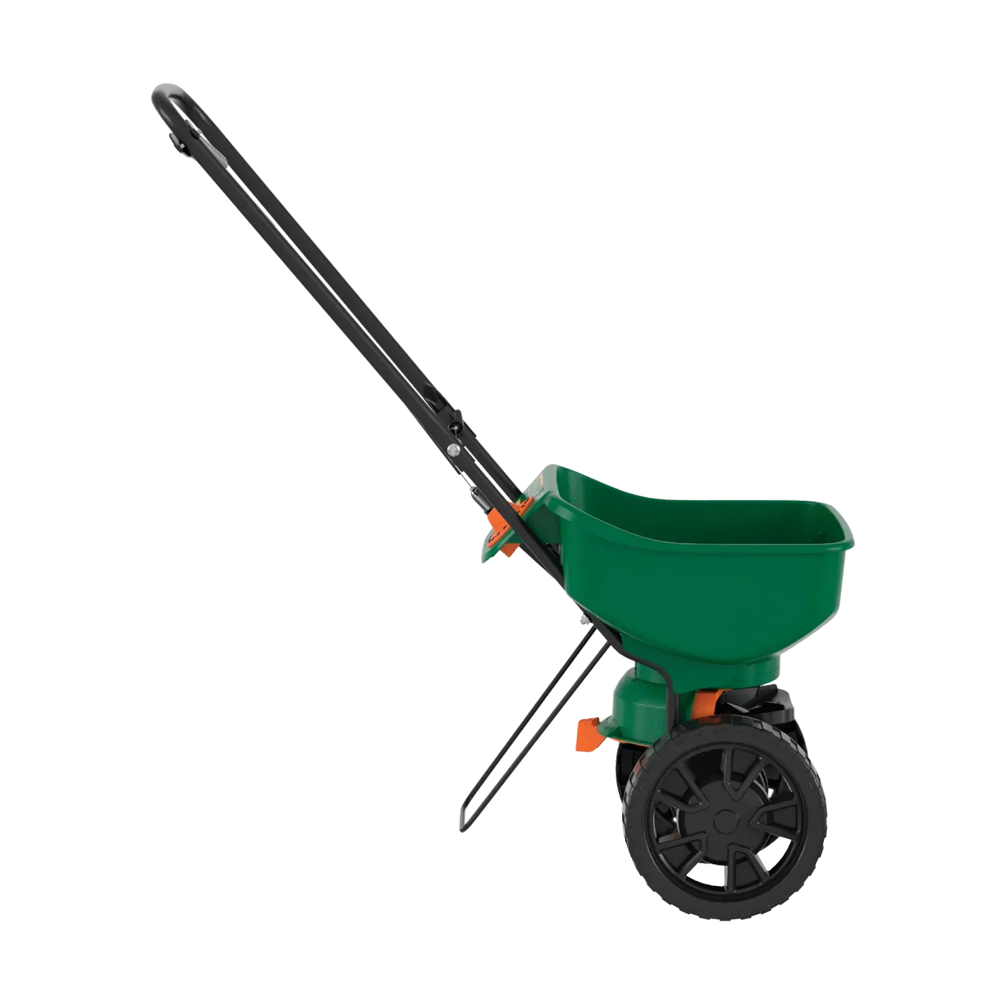 - SAVES SPACE IN THE GARAGE: The compact design with fold-down handle make this spreader a breeze to store, leaving you plenty of room for... well, more important stuff