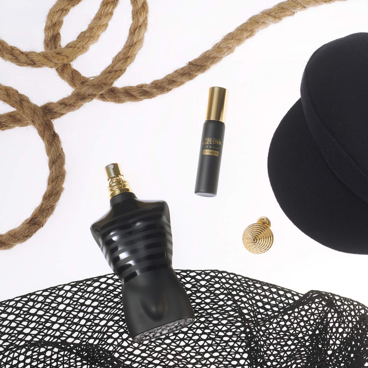 About the Bottle: Dressed head to toe in black, wearing an officer’s uniform trimmed with gold, the new intense Le Male Le Parfum Eau de Parfum commands respect in matte and shiny sailor stripes.