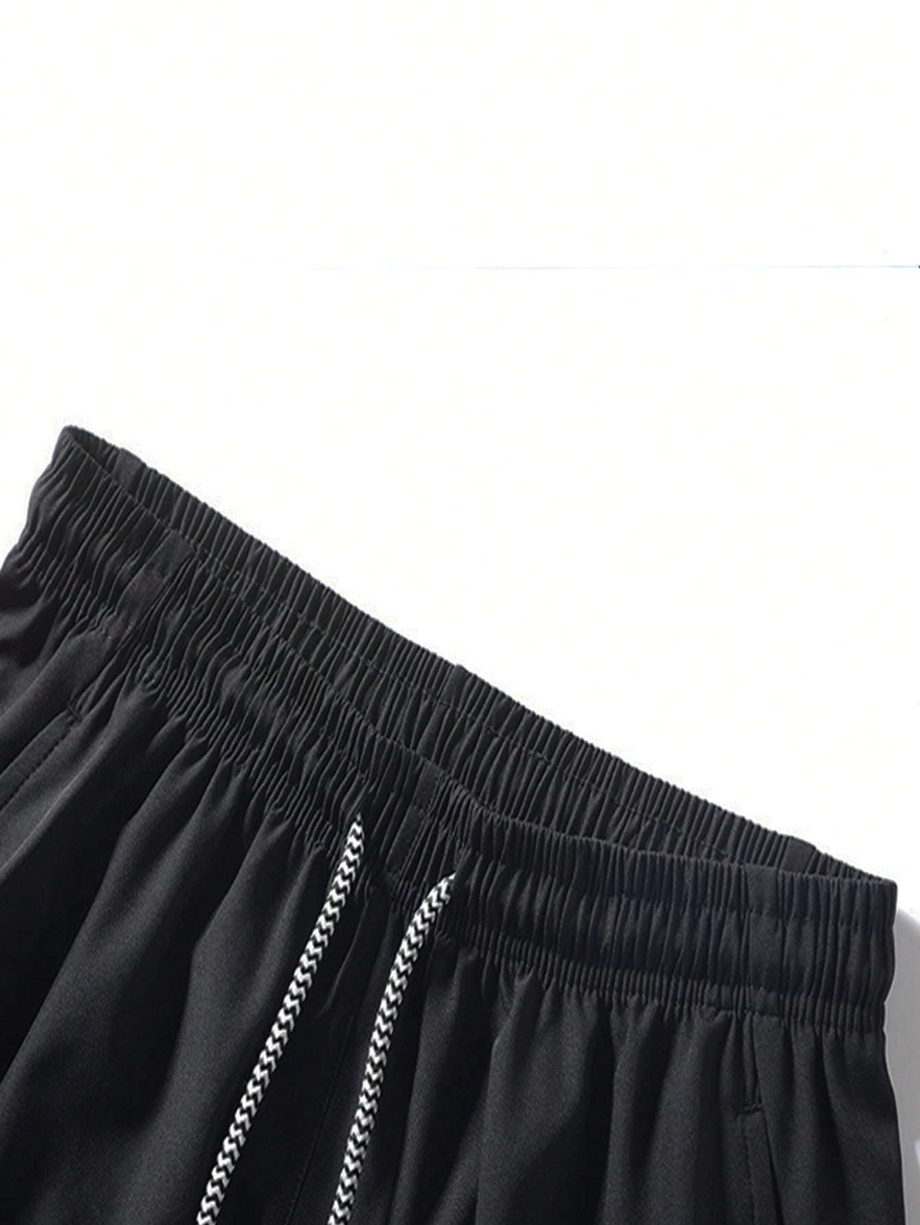 Men Drawstring Waist Zipper Pocket Shorts