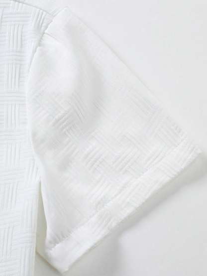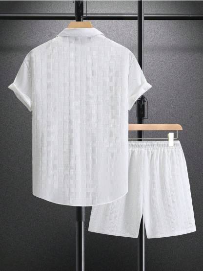 Men Solid Button Up Shirt & Shorts Set