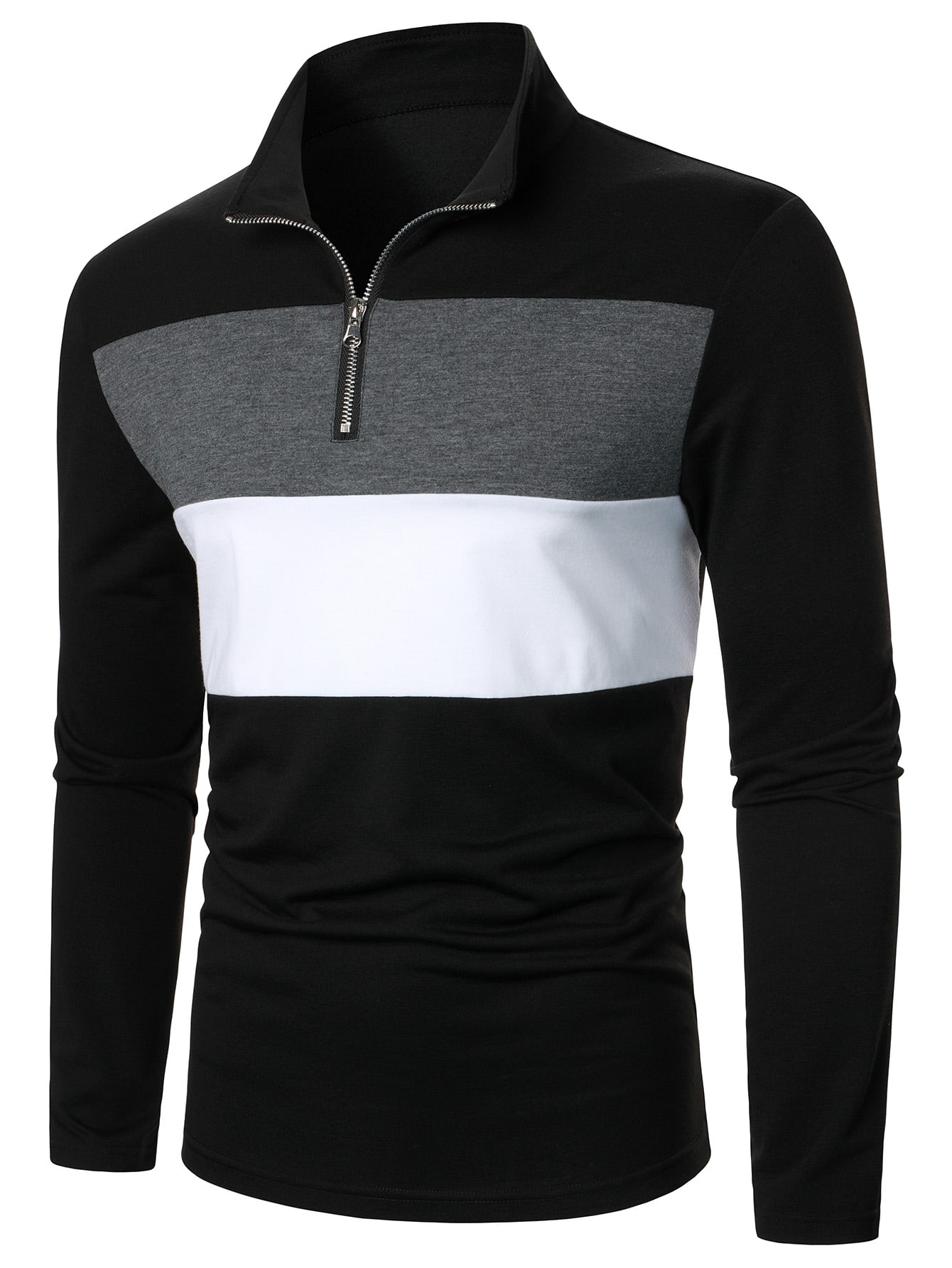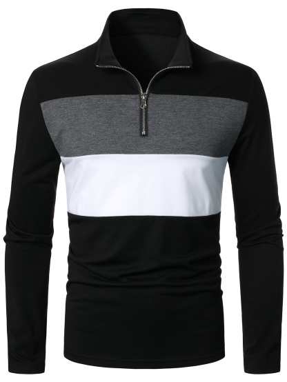 Men Color Block Quarter Zipper Polo Shirt