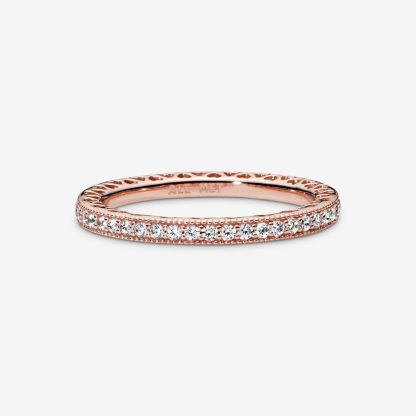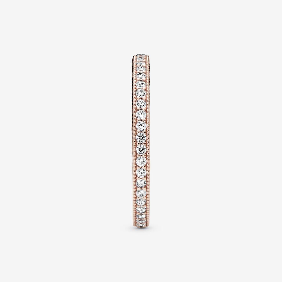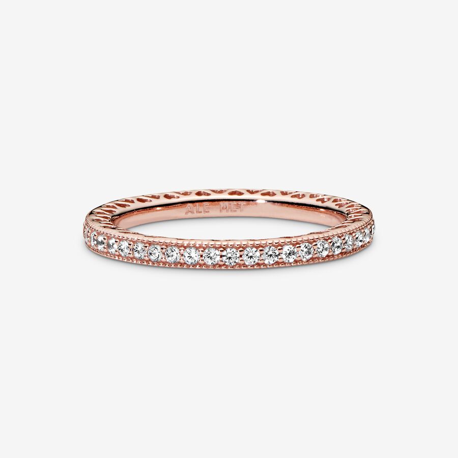 Express your heart's true desire with this sparkling eternity ring. Hand-finished in sterling silver, this elegant style beautifully combines dazzling cubic zirconia stones with delicate cut-out hearts. Showcase it on its own or mix and match with other Pandora stackable rings for a chic play on textures.