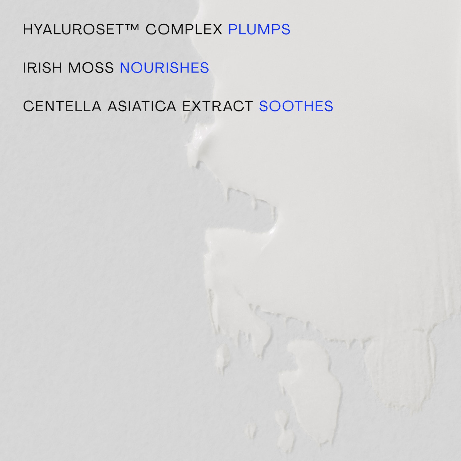 - Hyaluroset™ Complex: Serves as a botanical alternative to hyaluronic acid, nourishing, visibly plumping, and smoothing skin.