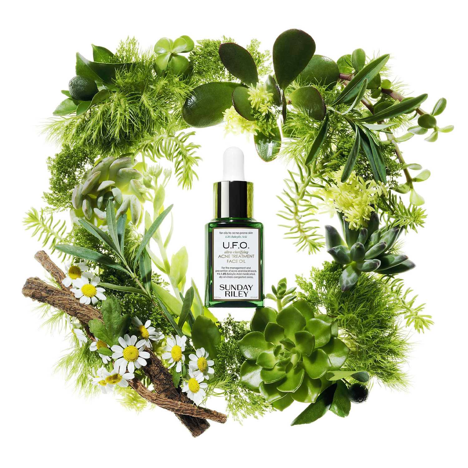 "When I formulated U.F.O., I wanted to create a dry oil that practically disappears into the skin, leaving oily skin smooth (but never greasy) and yet effectively treated for blemishes and blackheads. Salicylic acid is notoriously over-drying, leaving your skin stripped and looking irritated. By infusing salicylic acid into clarifying oils (like tea tree oil and black cumin seed oil), the drying effects of salicylic acid are nipped in the bud, while all of the treatment aspects (like clearing congested pores and managing blackheads and blemishes) are in full-force. U.F.O. is part of the new Green Line, along with Martian Mattiyfing Melting Water-Gel Toner, created specifically for oily skin clients."Sunday Riley